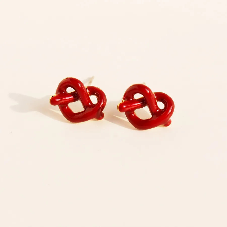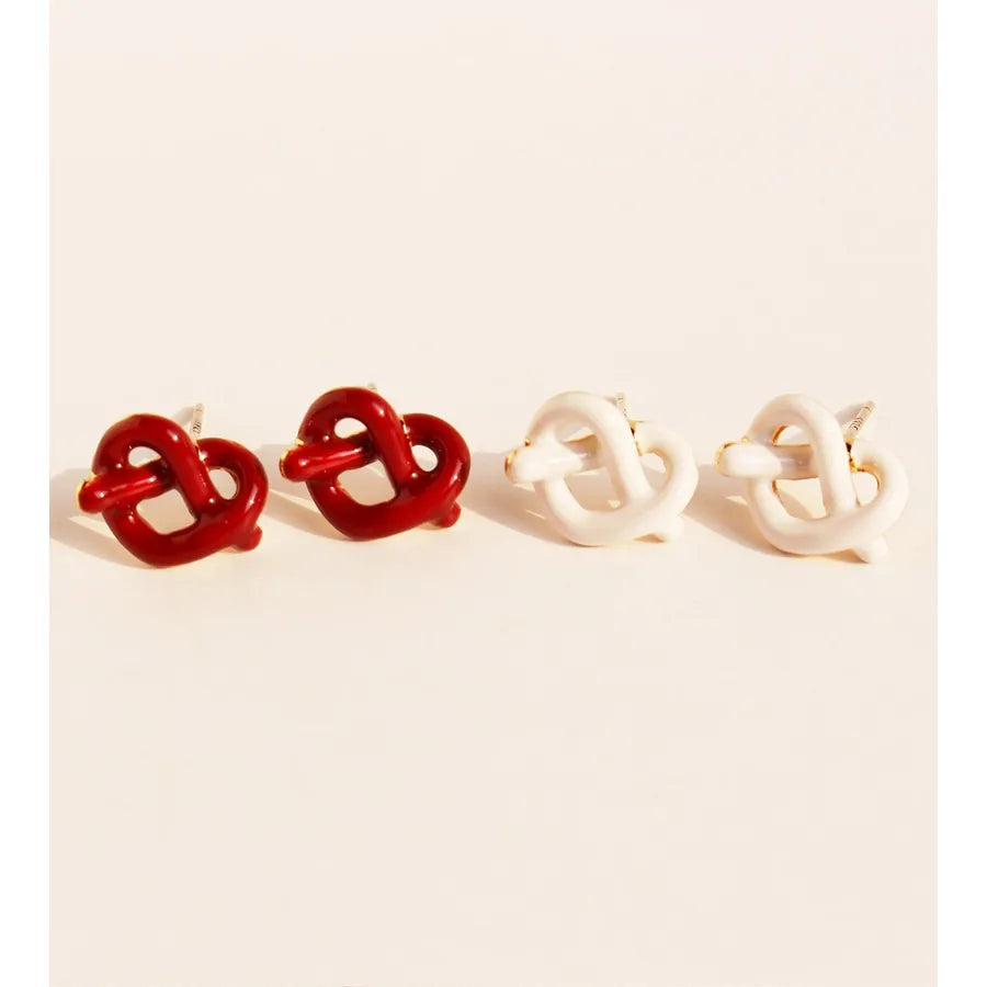 Enhance your style with these elegant and unique knot stud earrings, available in both vibrant red and classic white. Perfectly crafted with a sleek, modern design, they effortlessly blend simplicity and sophistication.