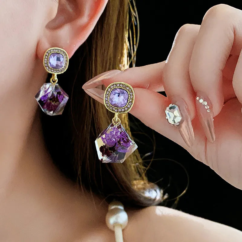 Whether you're dressing up for a night out or looking to enhance your daytime ensemble, these Purple Crystal Drop Earrings are your go-to accessory for a timelessly chic look.