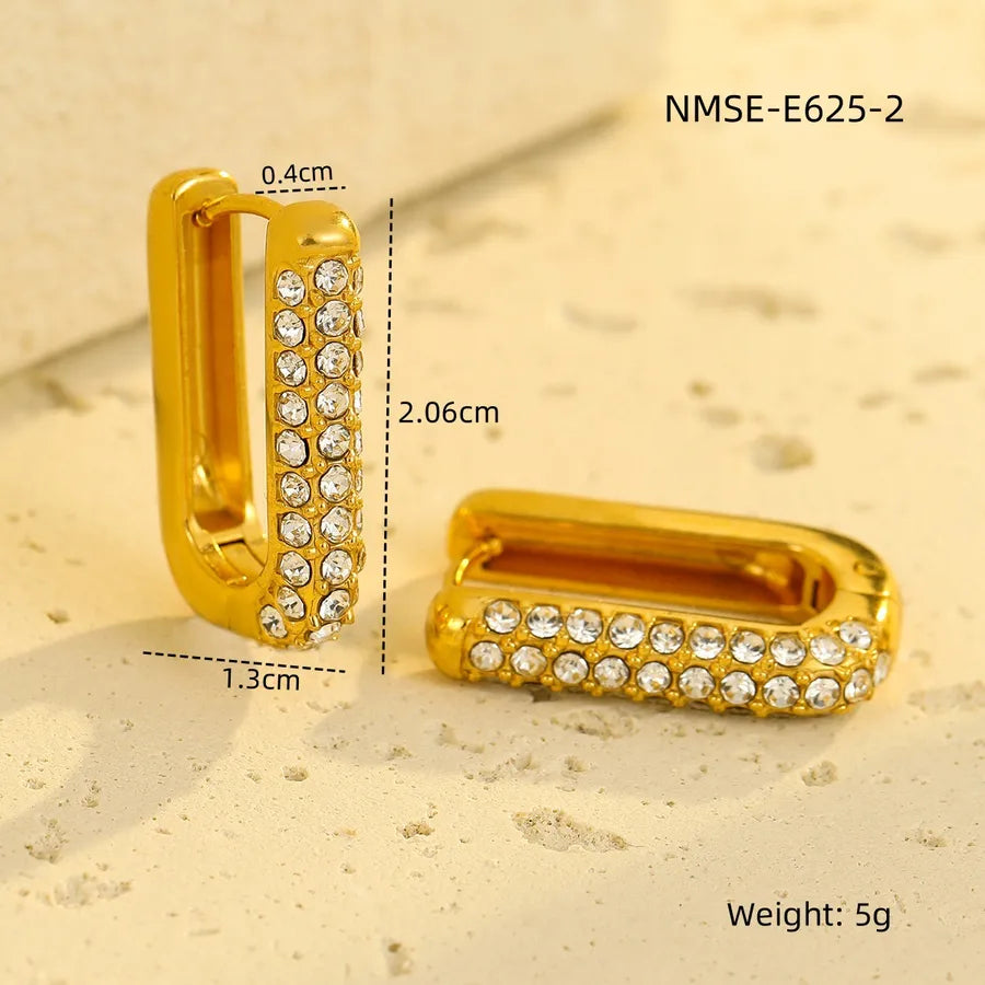 Elevate your style with these exquisite gold-toned hoop earrings, featuring a dazzling array of shimmering stones.