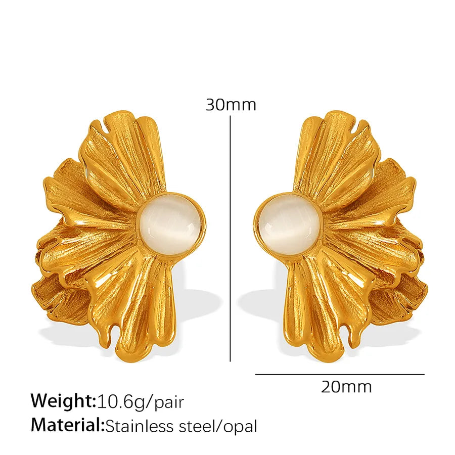 - Design: Golden floral petals with a central lustrous pearl.