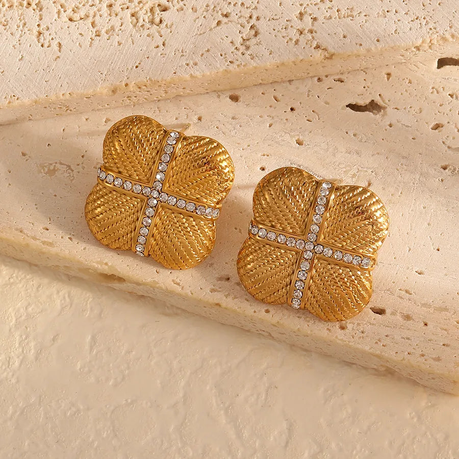 Featuring a stunning quilted texture, each earring is adorned with sparkling crystal crosses, adding a touch of sophistication to any ensemble.