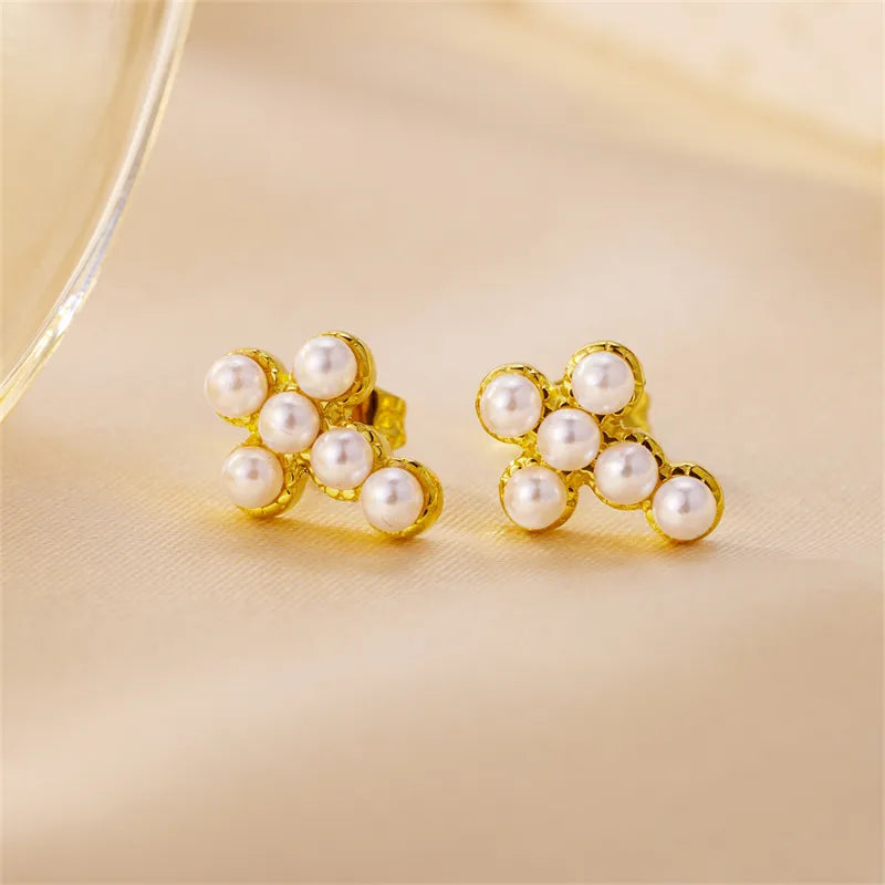 Enhance your elegance with our exquisite Gold Pearl Cluster Earrings. These stunning pieces feature a captivating design of lustrous pearls elegantly set in radiant gold. Perfect for adding a touch of sophistication to any outfit.