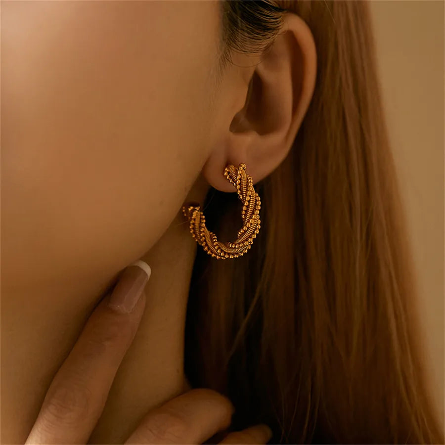 Crafted with precision, these hoops feature intricate twists that reflect light beautifully, adding a subtle sparkle to any outfit.