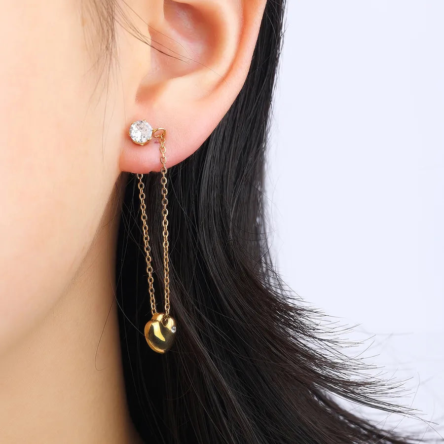 Enhance your elegance with our exquisite dangling chain earrings. Crafted with precision, these earrings feature a brilliant round-cut stone that captures and reflects light beautifully, adding a touch of sparkle to any look.