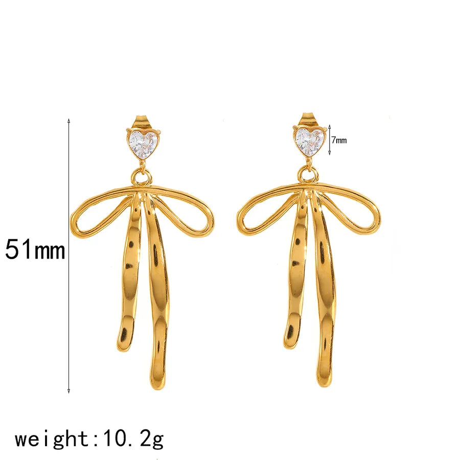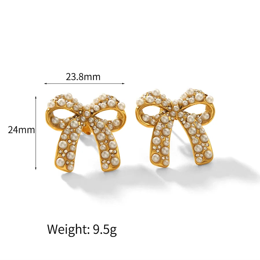 Featuring a stunning gold finish with two distinct styles - polished gold bows and rhinestone-encrusted bows - adding versatility and glamour to any outfit.