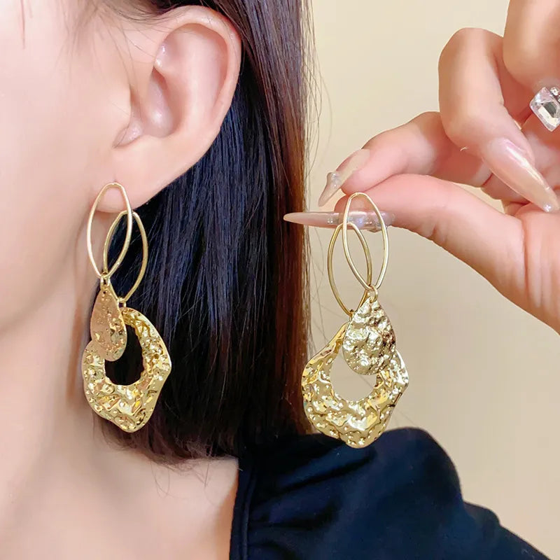 Elevate your style with our Gold-Tone Textured Drop Earrings, a stunning accessory designed to captivate.
