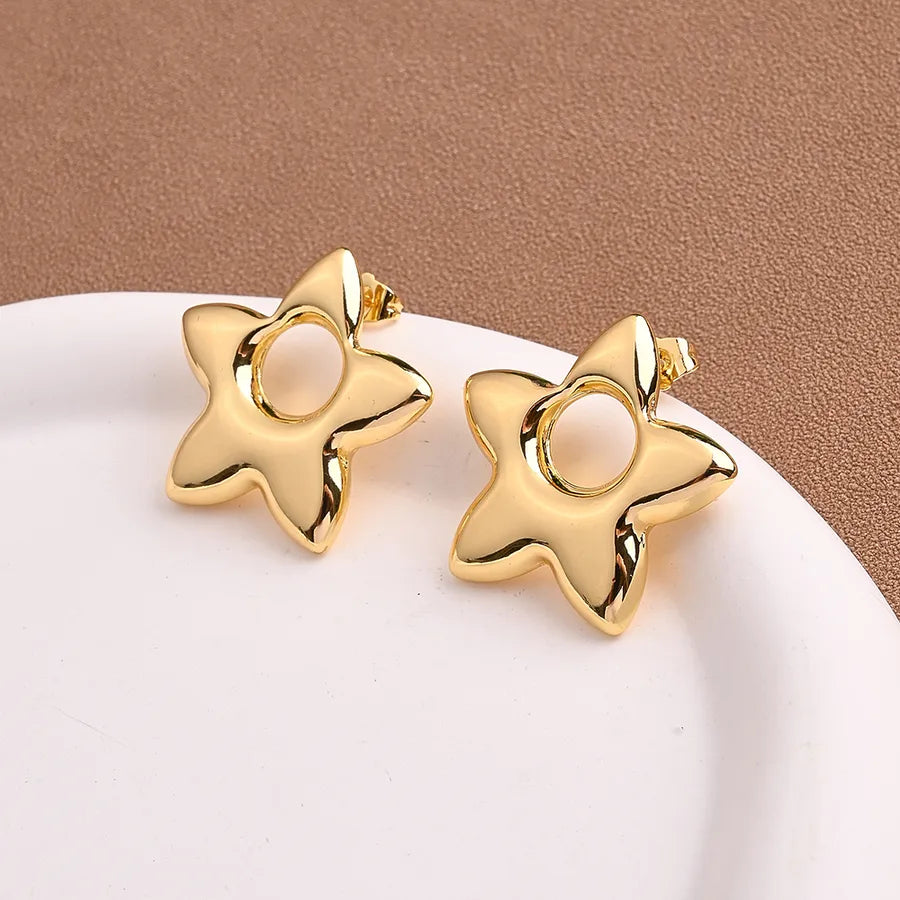 Featuring a variety of gold-toned earrings in unique designs, this set offers endless styling possibilities. From intricate star shapes to elegant hearts, each piece is crafted to perfection.