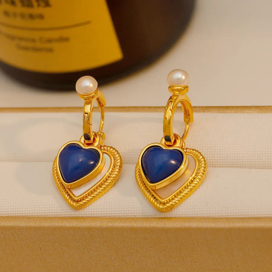 Design: These stunning earrings feature a vibrant blue heart centerpiece, encased in a graceful golden outline.