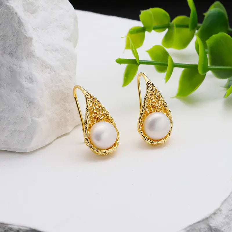 Featuring a lustrous white pearl set in intricate gold filigree, these earrings offer a timeless look, perfect for any occasion.