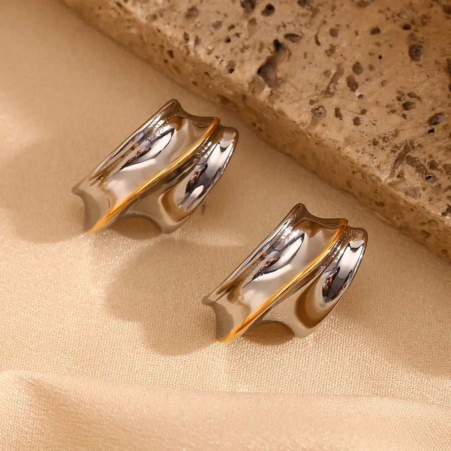 Crafted for those who appreciate elegance and sophistication, these earrings boast a unique wave design that catches the light beautifully.