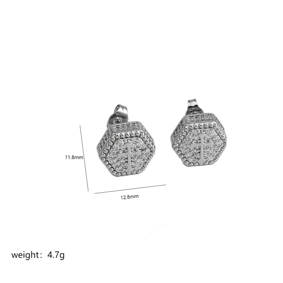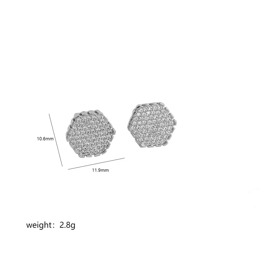 Each earring is adorned with sparkling cubic zirconia stones, intricately arranged to add luxurious brilliance and sparkle to your look. The hexagonal design exudes modernity while maintaining a classic appeal, making it suitable for any occasion, from casual to formal.