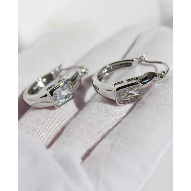 These earrings are crafted from high-quality materials, ensuring durability and lasting shine. The centerpiece features a stunning rectangular gemstone, adding a sophisticated sparkle that catches the light beautifully.