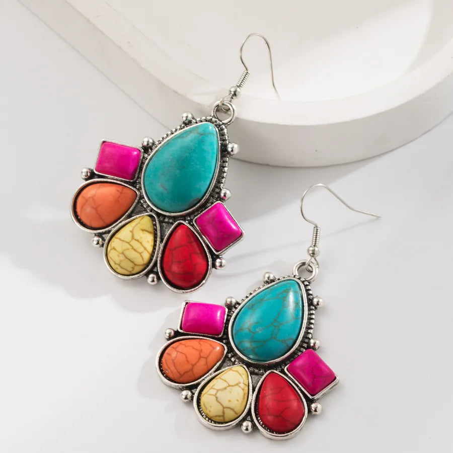 Discover the vibrant charm of our exquisite Multicolor Stone Statement Earrings Set!