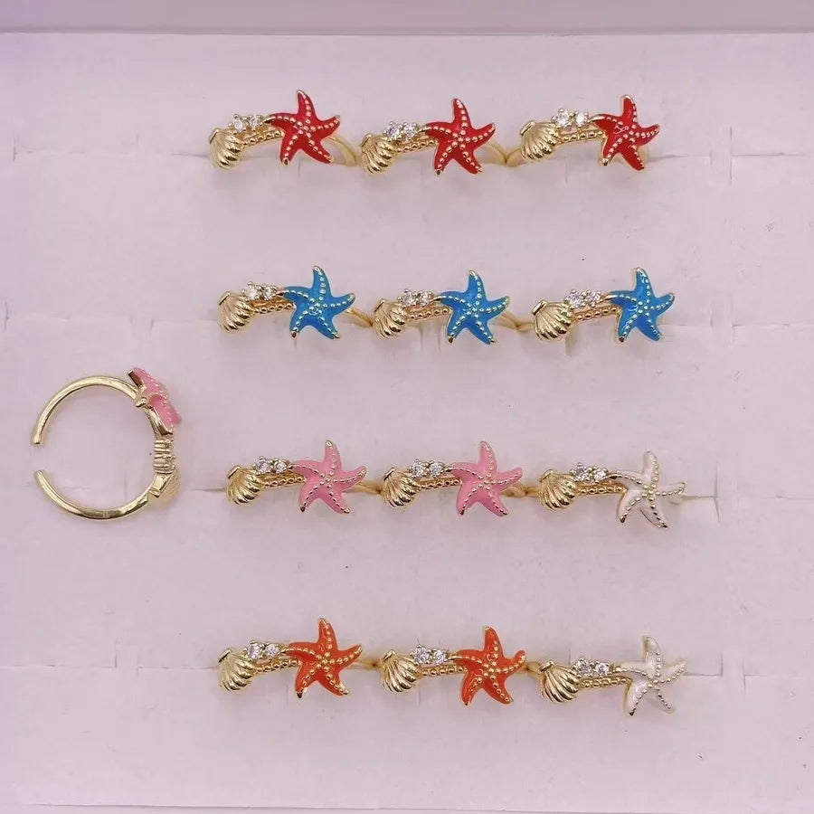 - Set Includes: A total of four vibrant starfish ear cuffs and a ring.