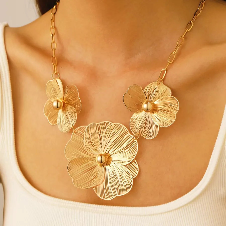 Featuring delicately crafted floral designs, this set includes a stunning necklace and matching earrings.