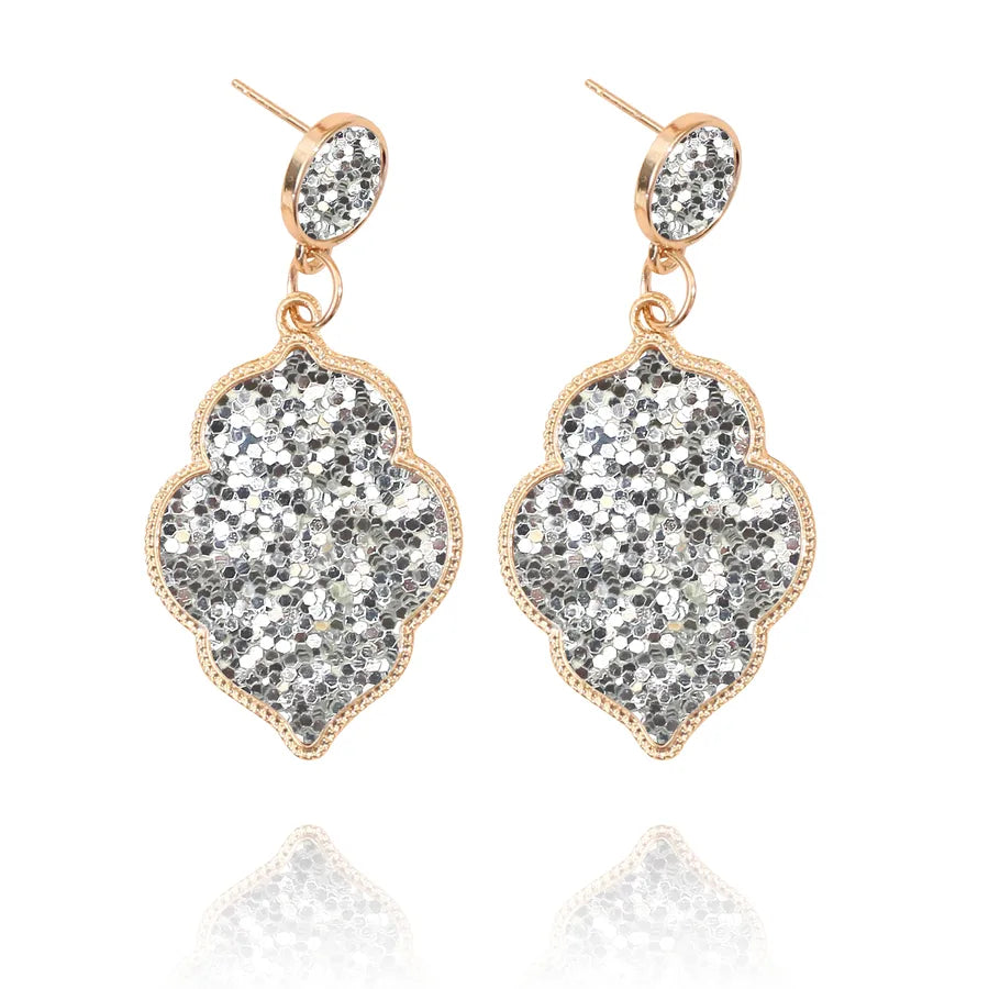 Featuring a shimmering mosaic of intricately crafted silver-tone sequins, these earrings bring forth a blend of elegance and modern flair.