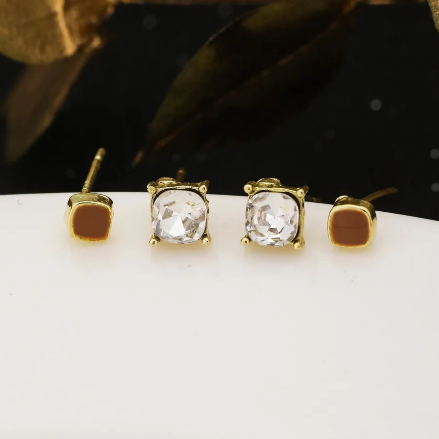 Featuring two distinct pairs, this collection combines classic charm with modern design. The first pair boasts stunning, sparkling gemstones set in a timeless frame, perfect for any luxurious occasion. The second pair offers a subtle touch with a sleek, minimalist design, tailored for everyday wear.