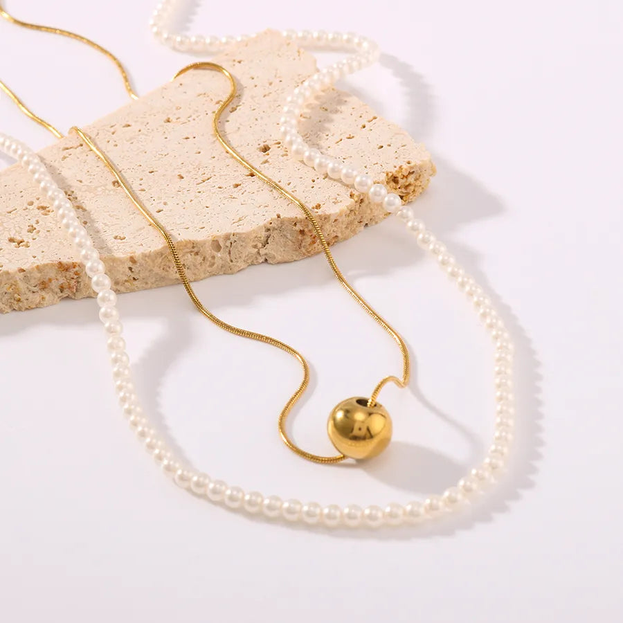 Crafted with precision, the gold necklace features a polished, smooth finish, while the pearls provide a luxurious touch.