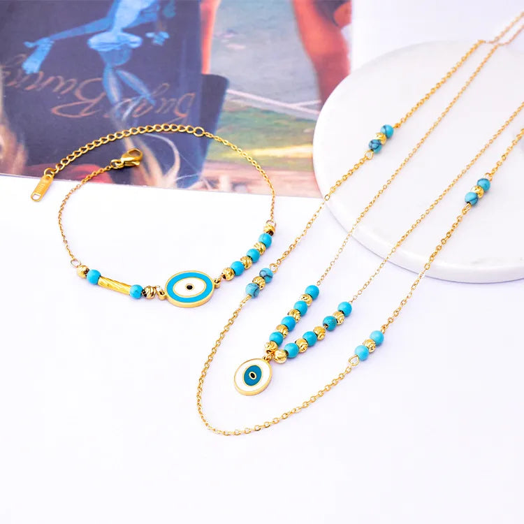Embrace elegance and protection with this exquisite jewelry set, featuring a stunning evil eye motif.
