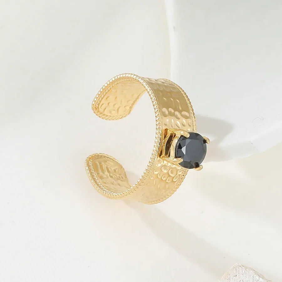 Elevate your style with this exquisite gold ring, featuring a beautifully crafted black stone centerpiece.
