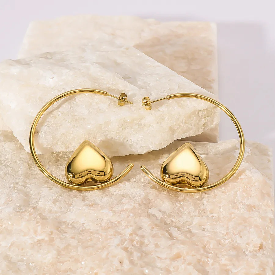 Whether you're dressing up for an evening out or adding a hint of luxury to your daily attire, our Gold Heart Hoop Earrings are the perfect accessory.