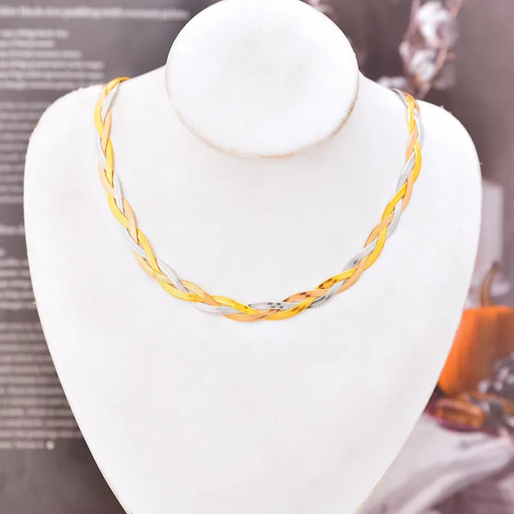 Enhance your elegance with this stunning twisted gold necklace and bracelet set.
