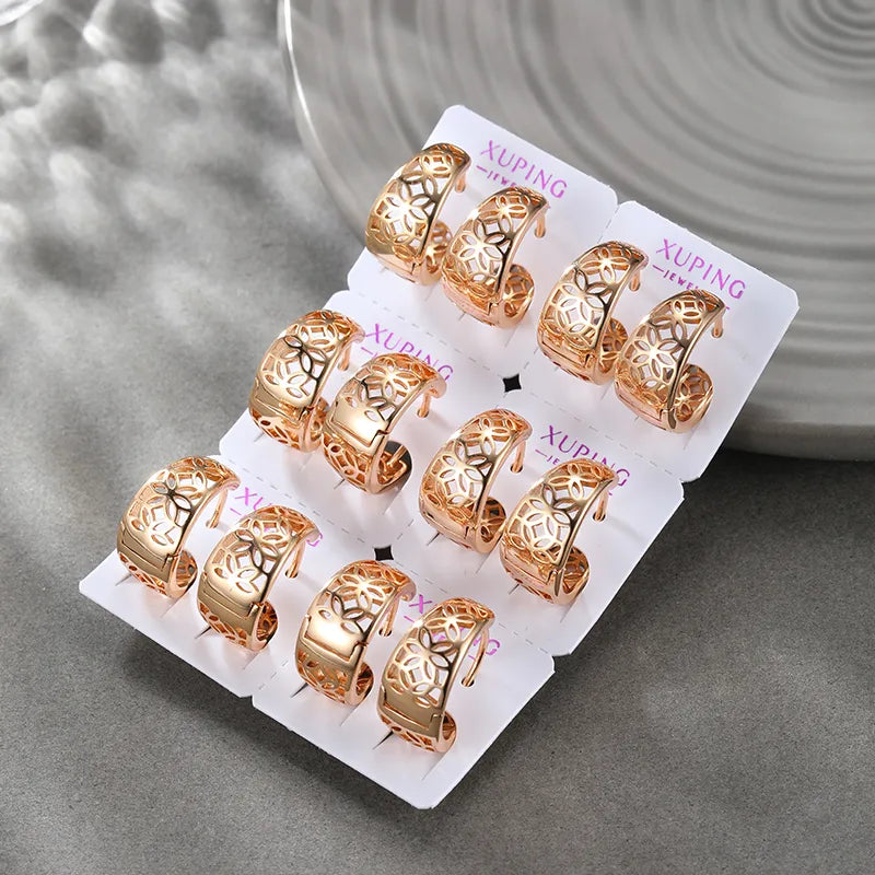 Elevate your style with our exquisite set of gold-toned hoop earrings, featuring an intricate cutout floral design that embodies elegance and sophistication.