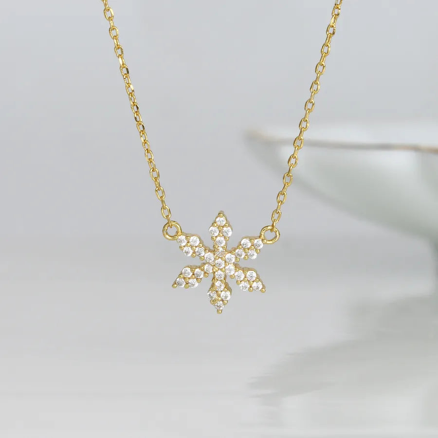 This exquisite piece features a meticulously crafted snowflake design adorned with sparkling cubic zirconia stones, set in a high-quality gold-plated finish.