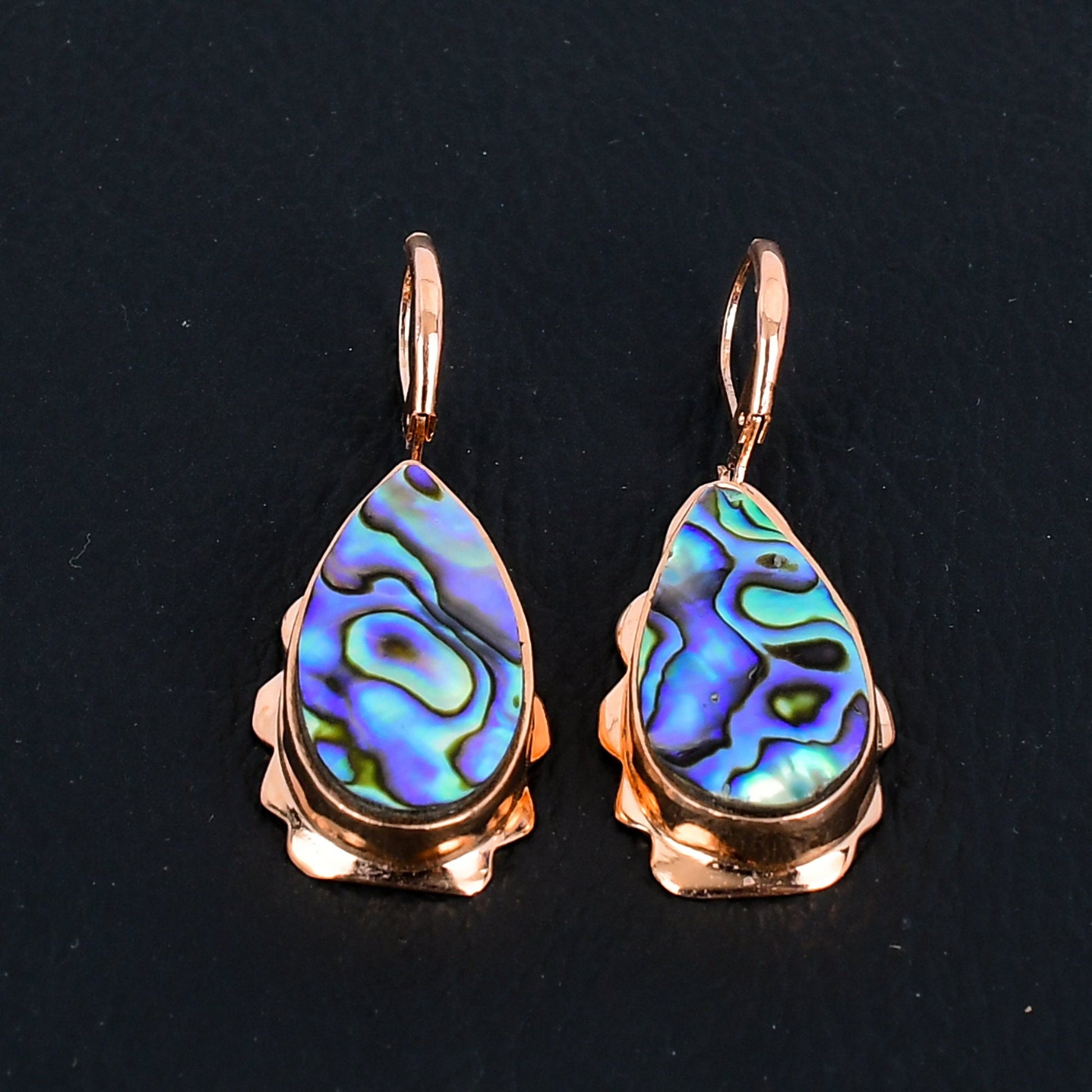 Enhance your elegance with these stunning teardrop earrings, featuring mesmerizing abalone shell inlays that shimmer with every movement.
