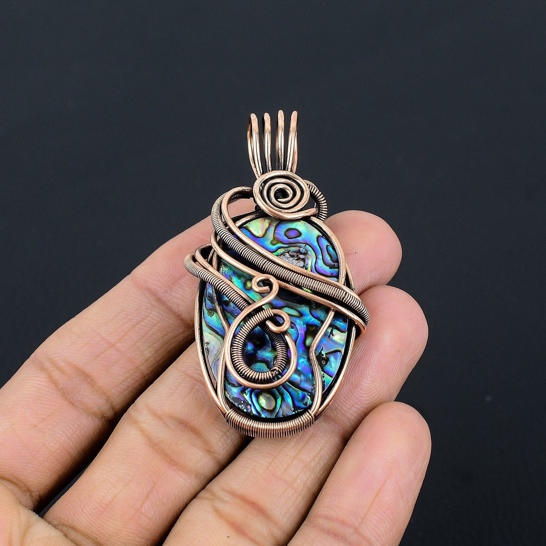 Discover the exquisite beauty of our handcrafted wire-wrapped pendant, featuring a mesmerizing abalone shell.