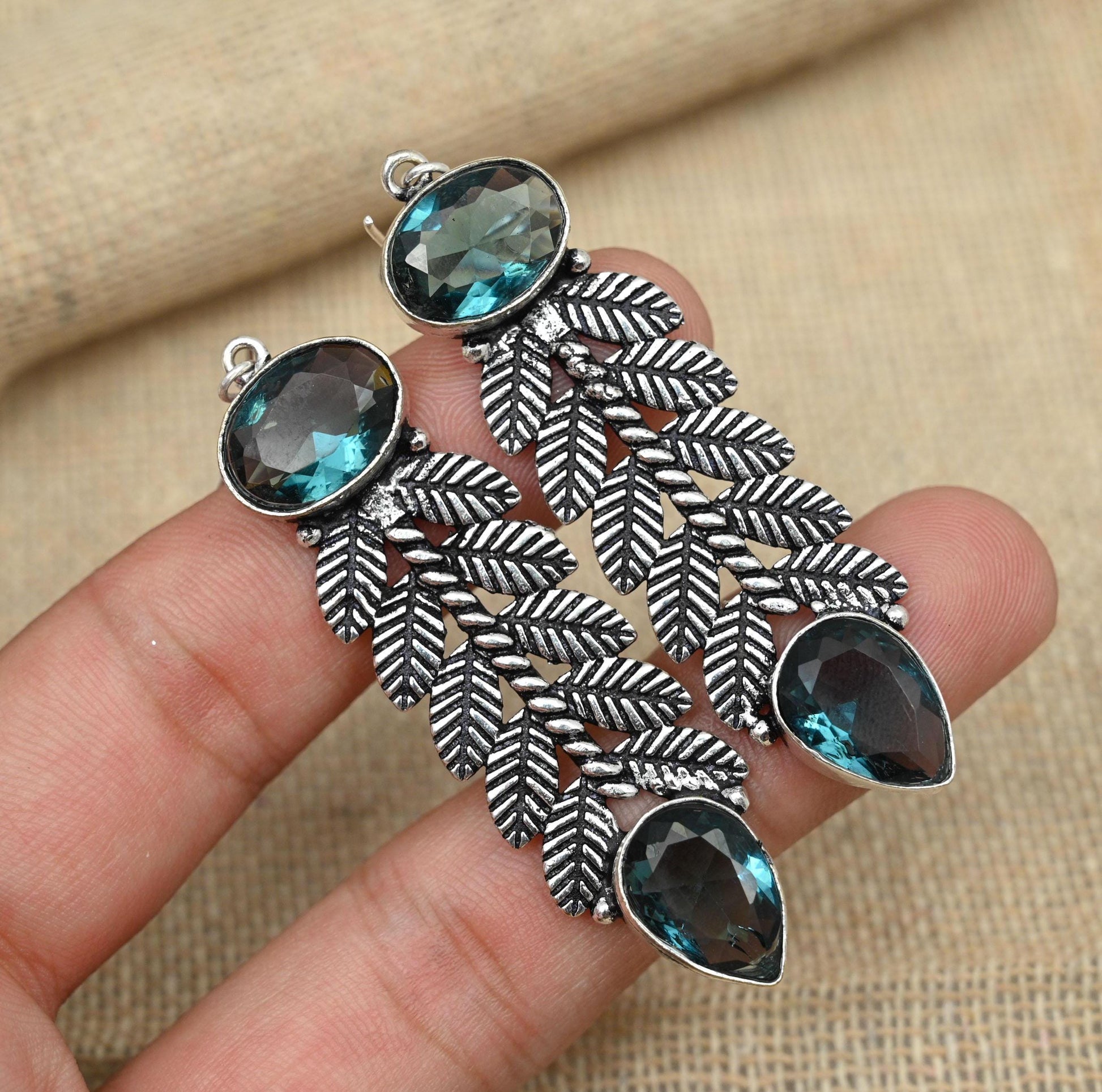 Adorned with sparkling blue gemstones, the earrings offer a captivating brilliance that enhances any outfit, ensuring you shine at every occasion.
