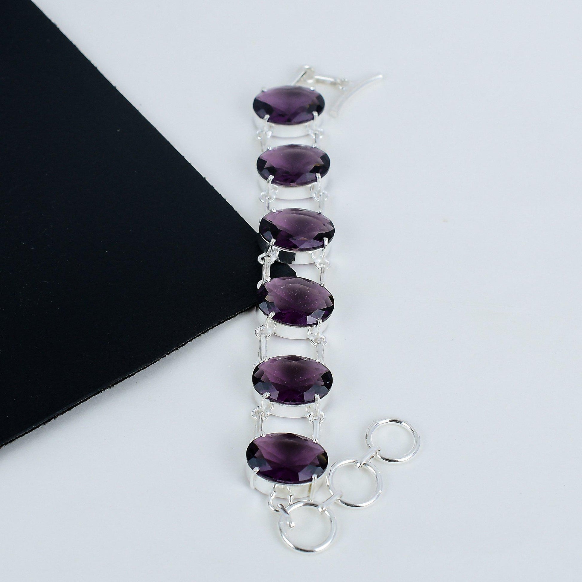 Enhance your elegance with our exquisite Amethyst Silver Bracelet. Each luxurious, oval-cut amethyst is surrounded by high-quality silver, offering a striking contrast that catches the light beautifully.