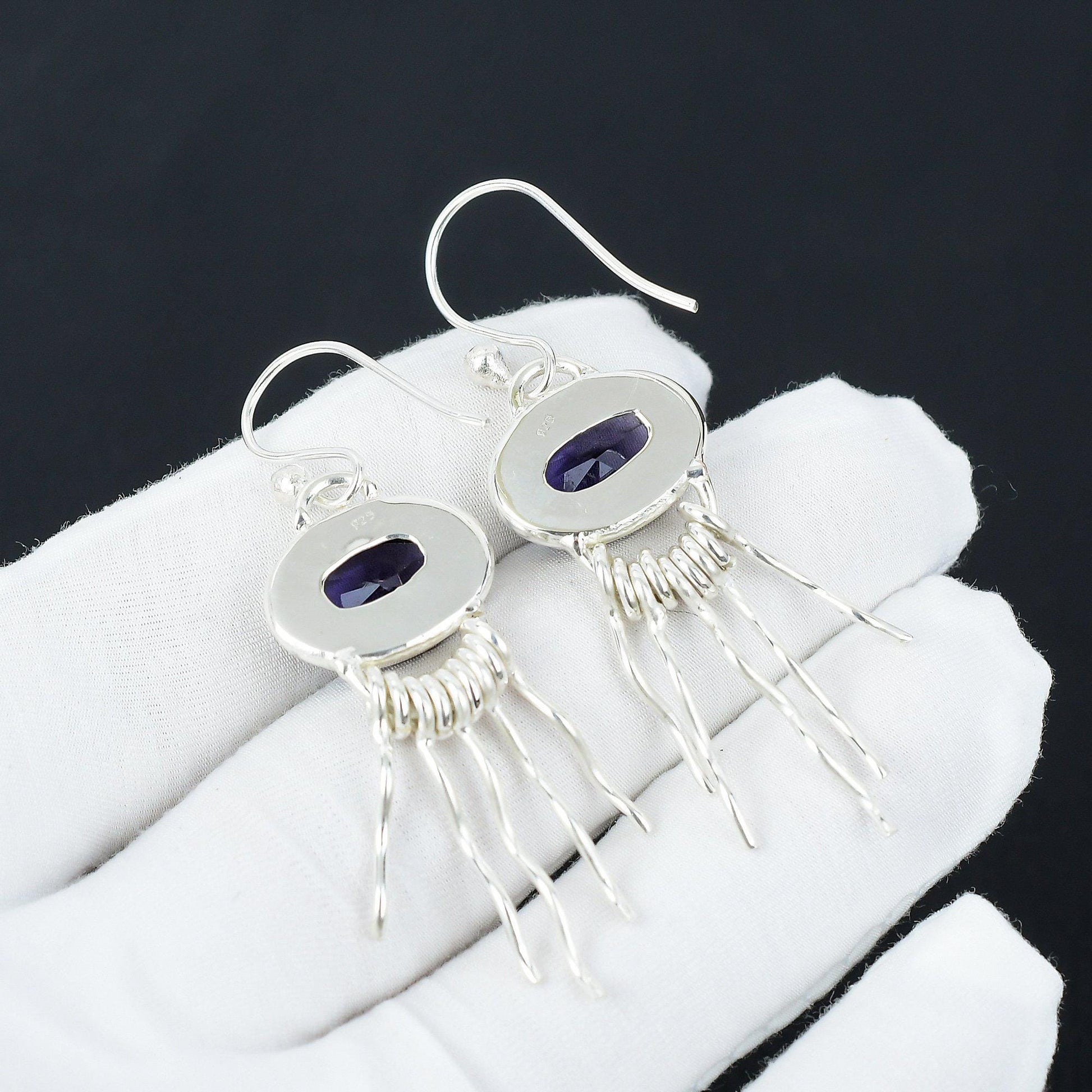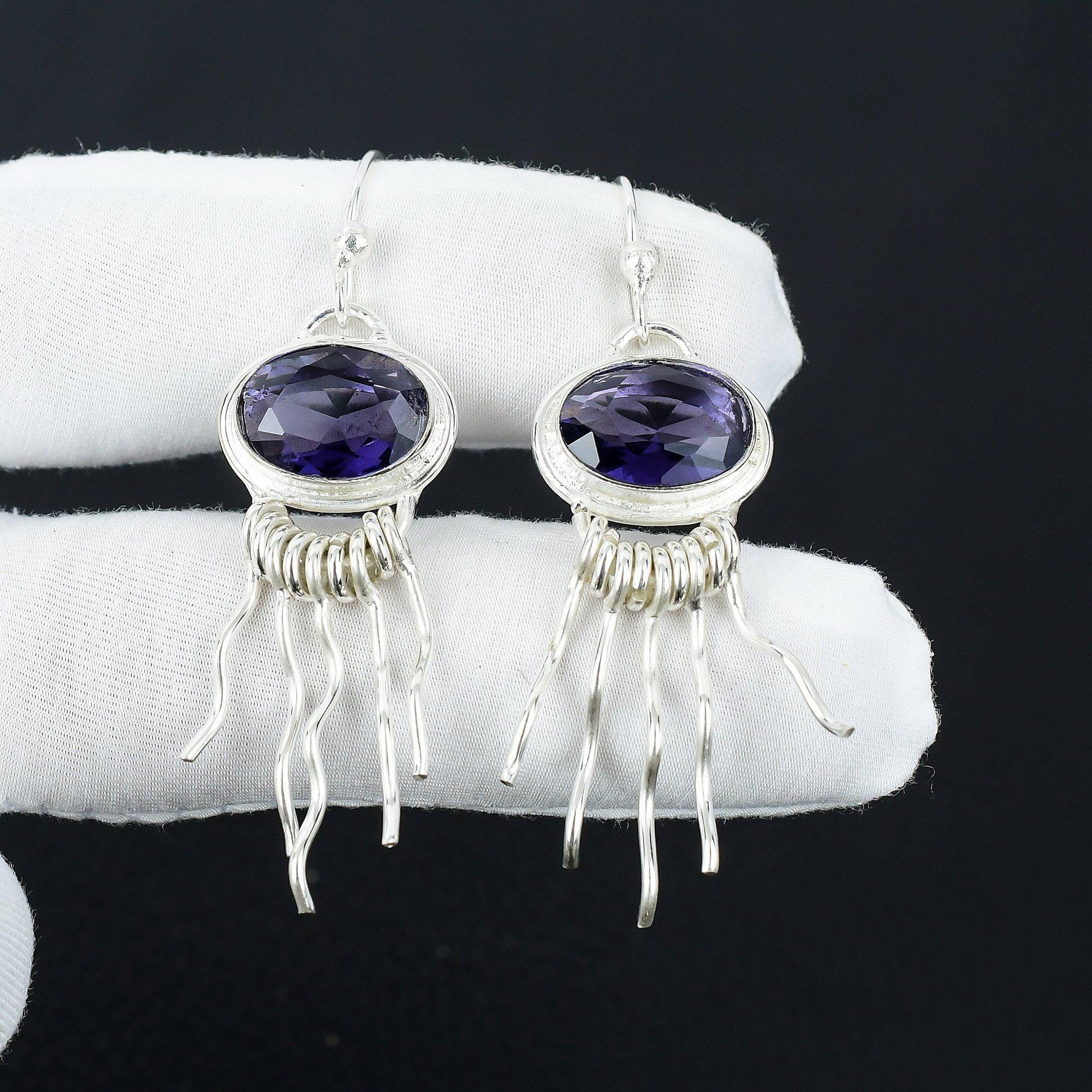 Featuring a mesmerizing oval-shaped amethyst gemstone at the center, each piece is adorned with unique, artistic silver tendrils that cascade down, creating a dynamic and enchanting look.