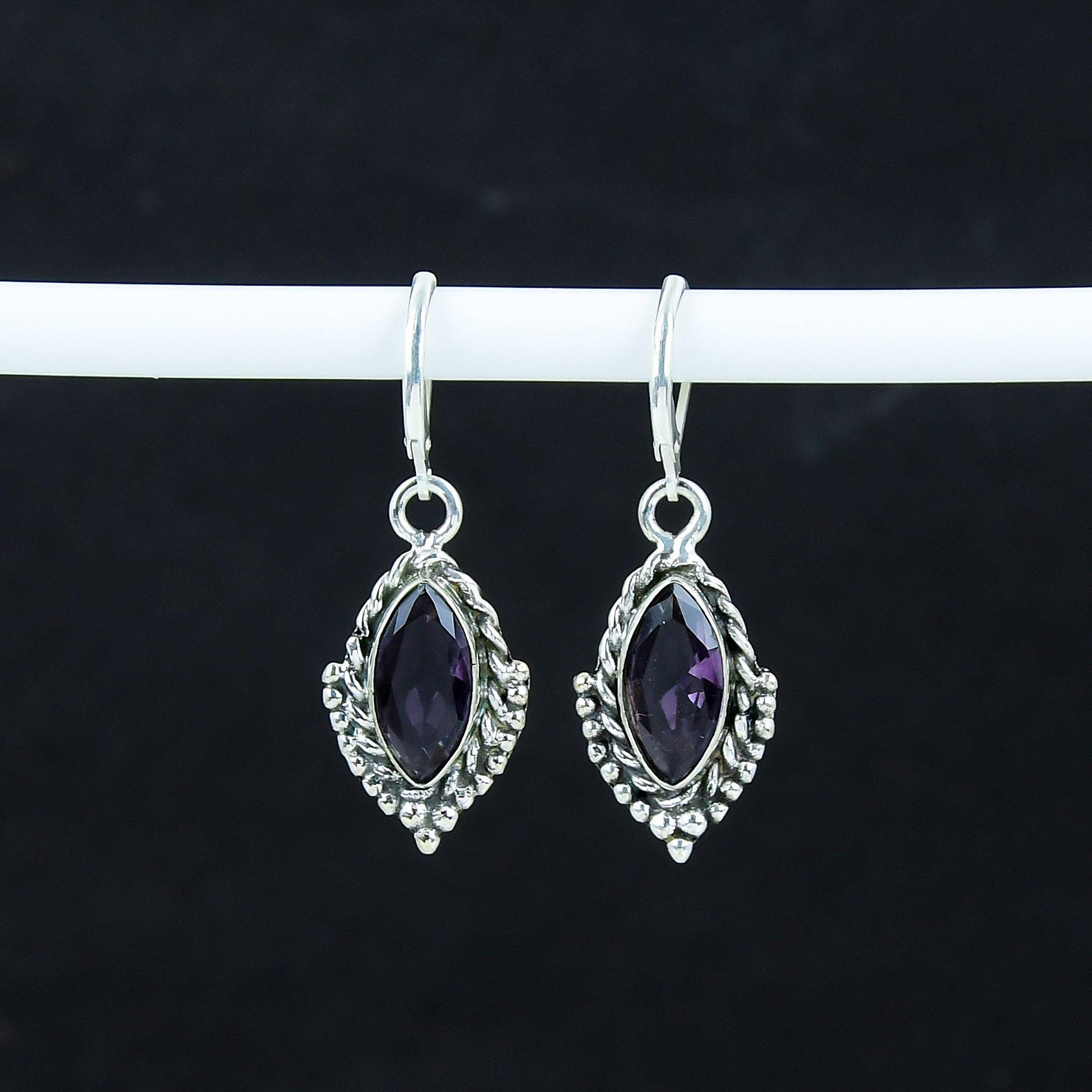 The deep hues of the gemstones add a touch of mystery and allure, making these earrings a versatile addition to any jewelry collection.
