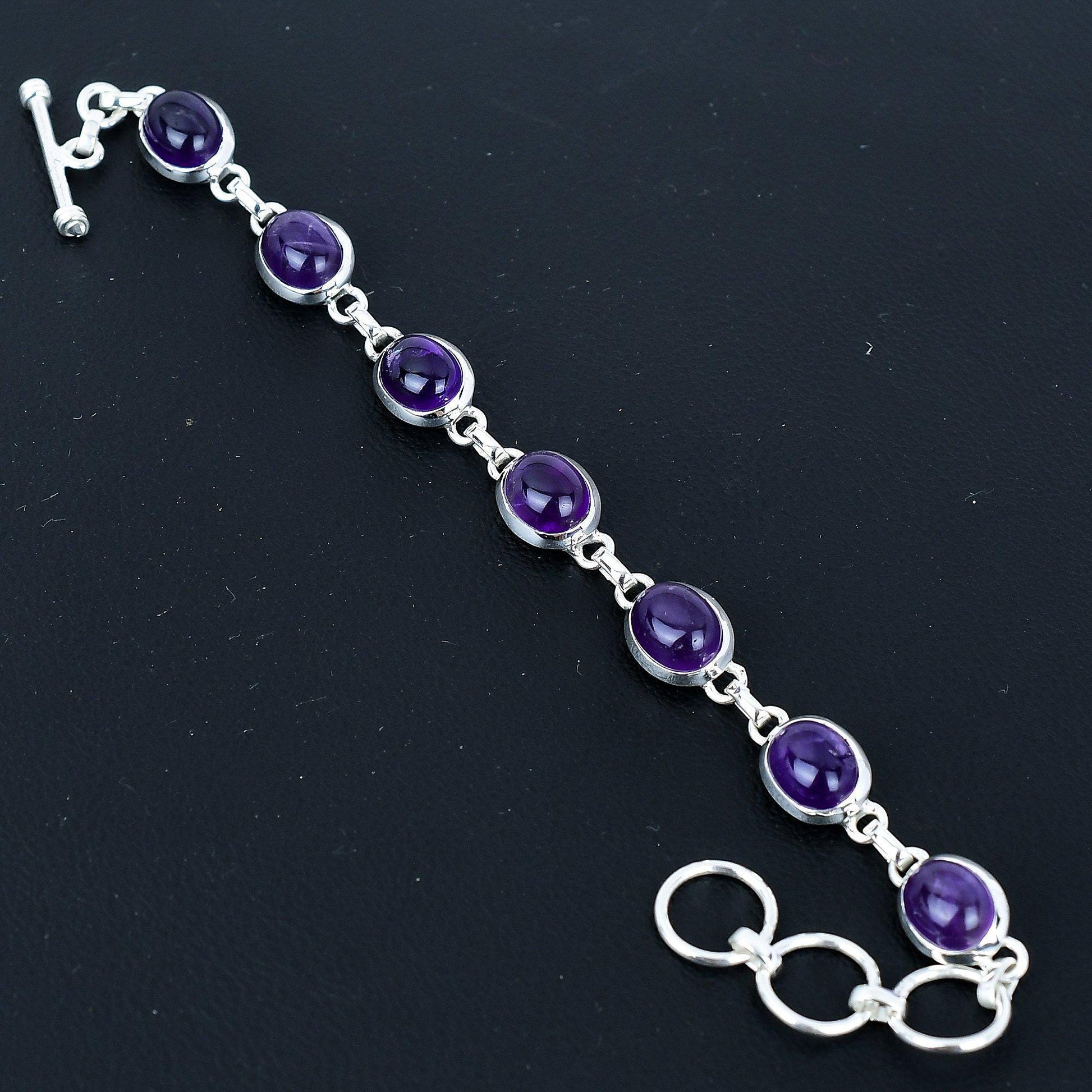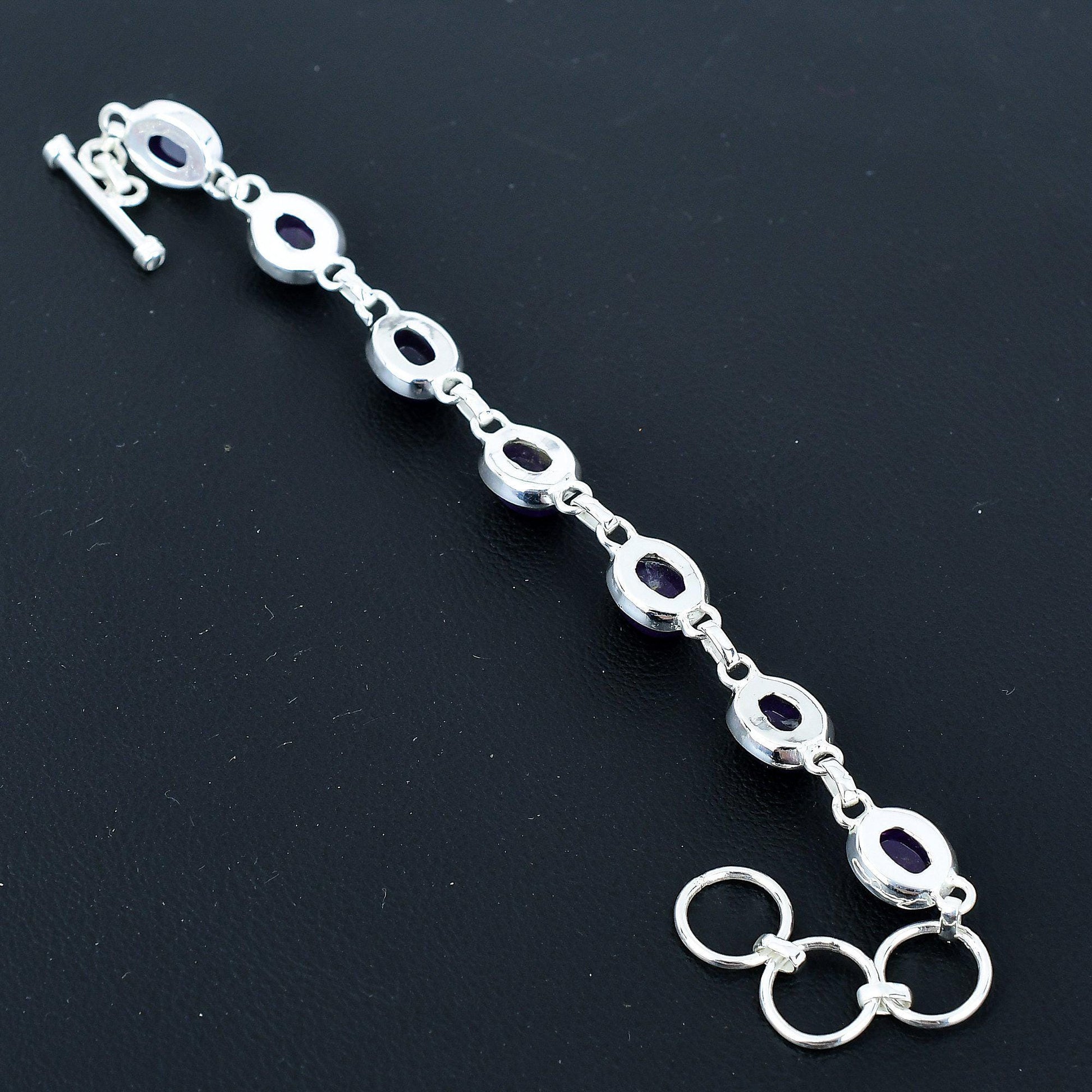 Design: Featuring seven oval amethyst stones set in polished sterling silver links.