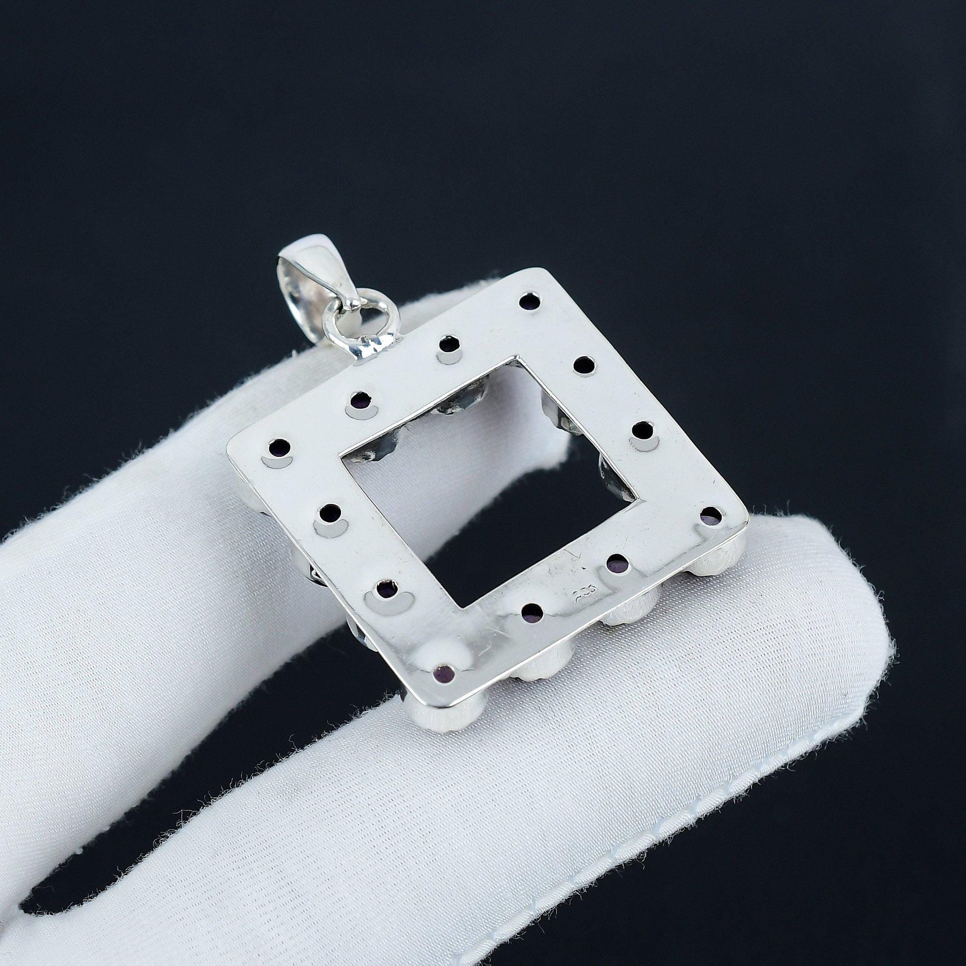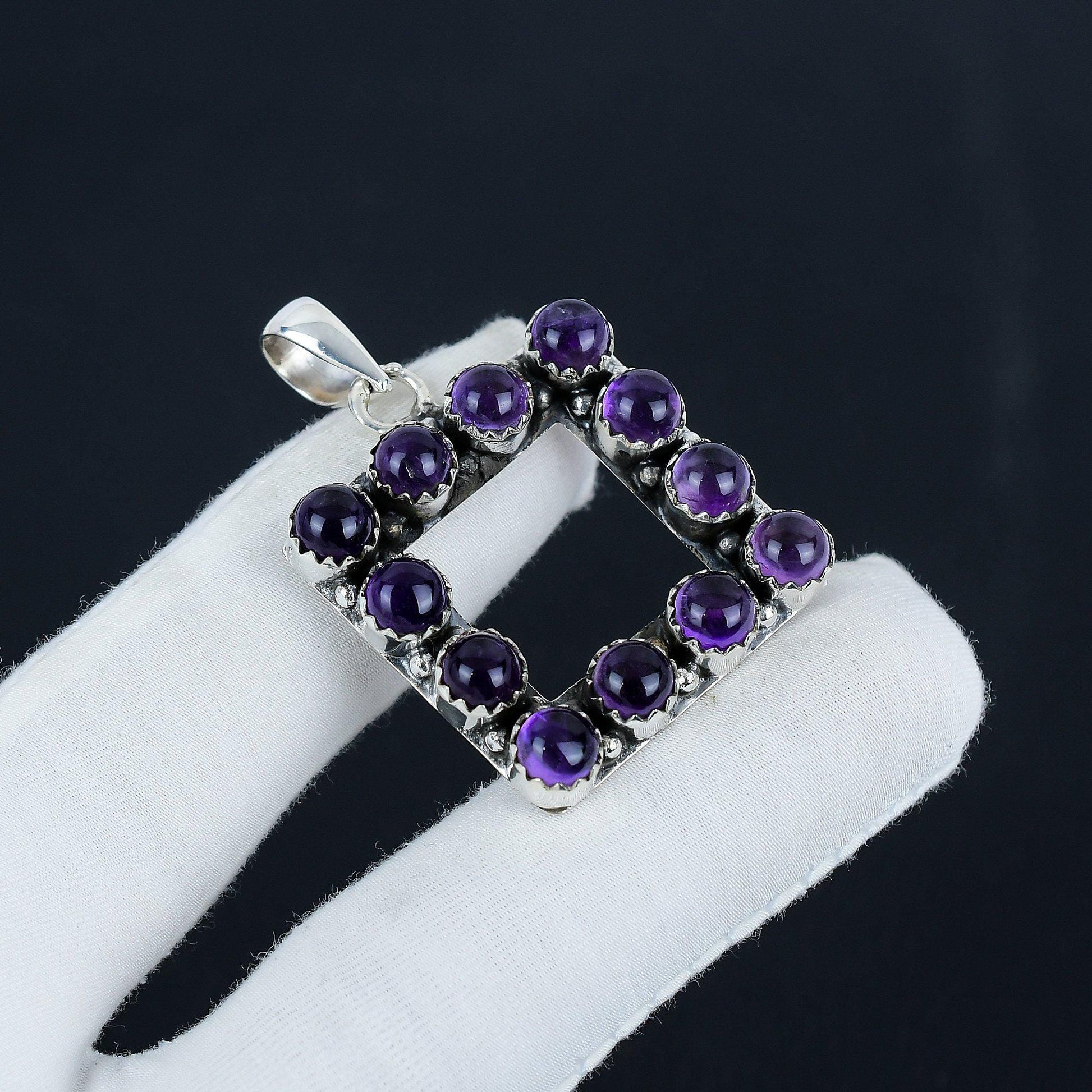 Introducing our exquisite Amethyst Square Pendant, a true embodiment of elegance and individuality. This unique piece features a stunning arrangement of deep purple amethyst stones, meticulously set in a sophisticated square design.