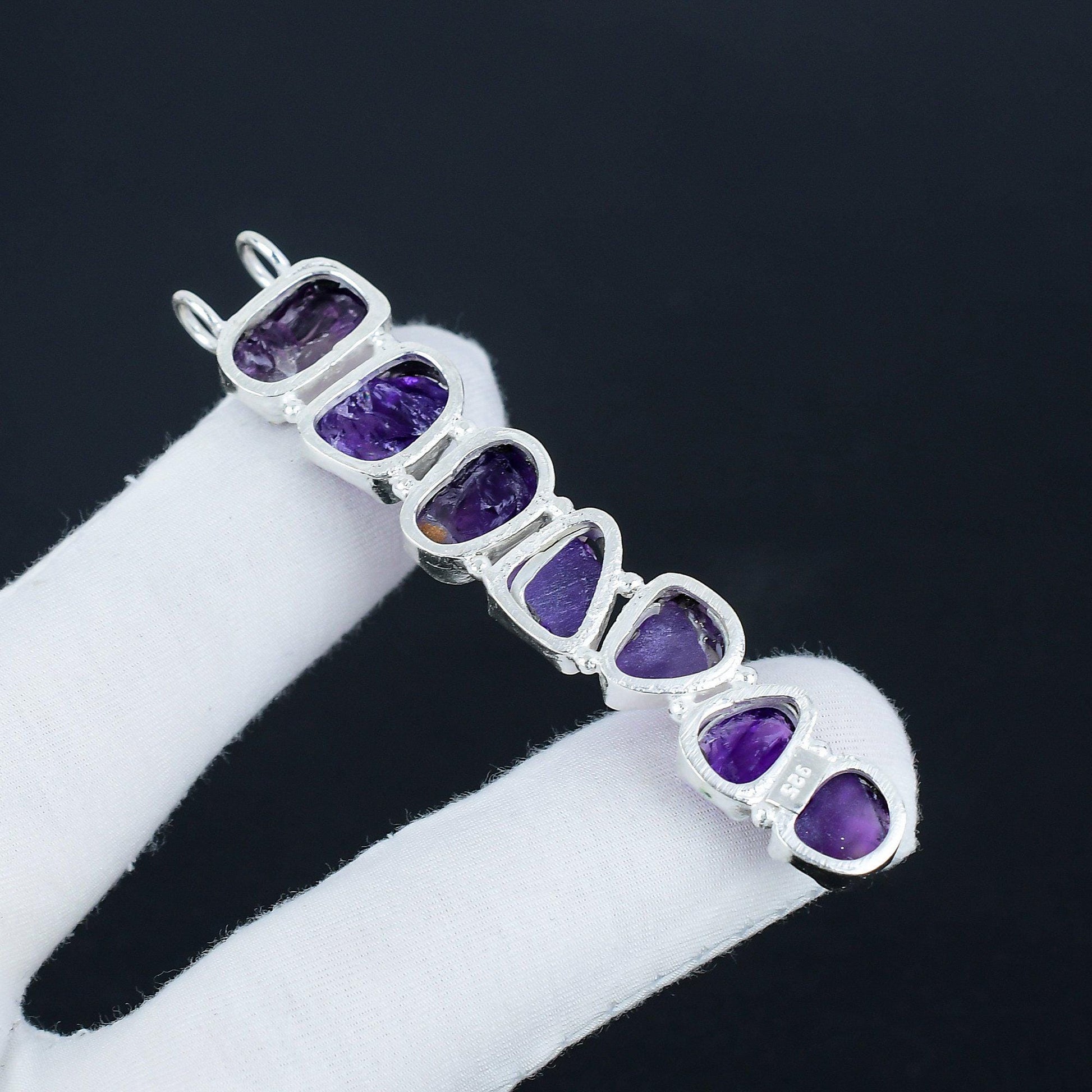 Every bracelet captures the unique essence of the Earth, featuring uncut, genuine amethyst stones, hand-set in elegant sterling silver.