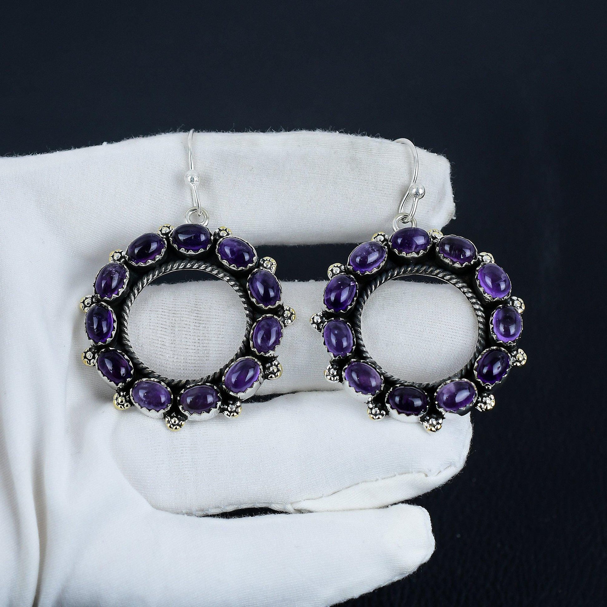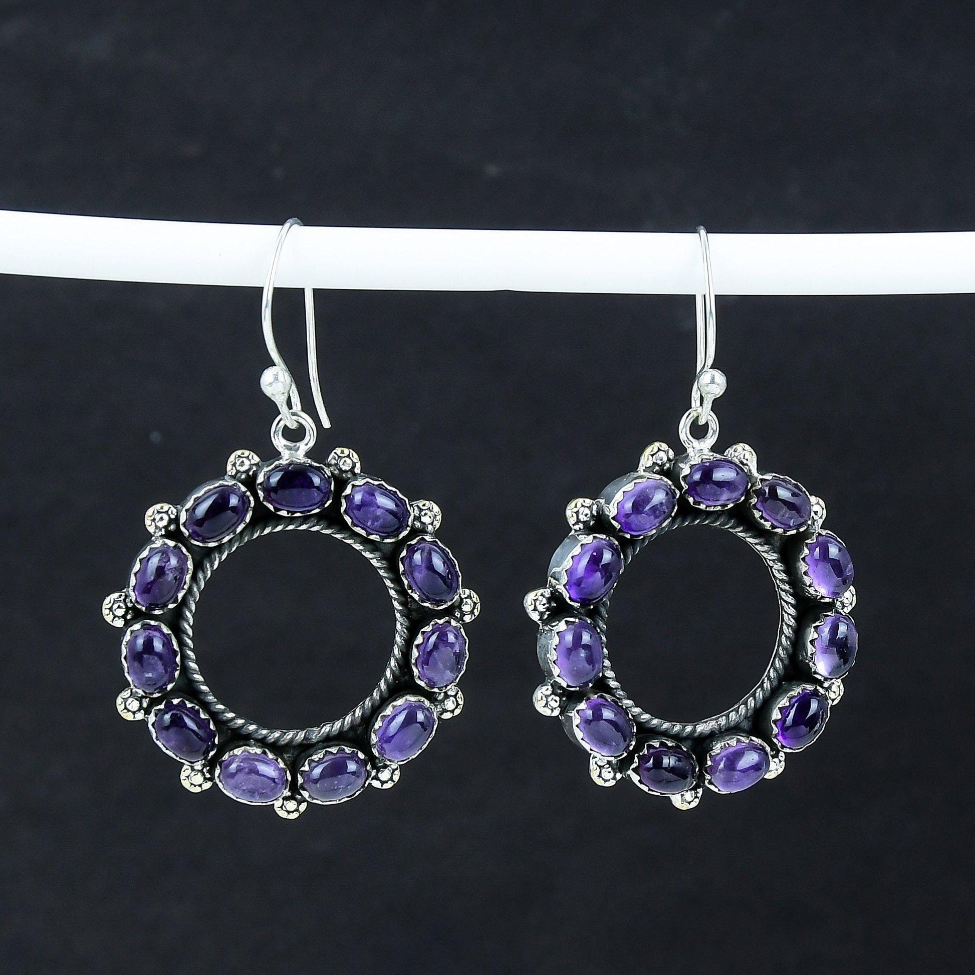 Elevate your elegance with these exquisite circular drop earrings, adorned with a captivating array of deep purple stones.