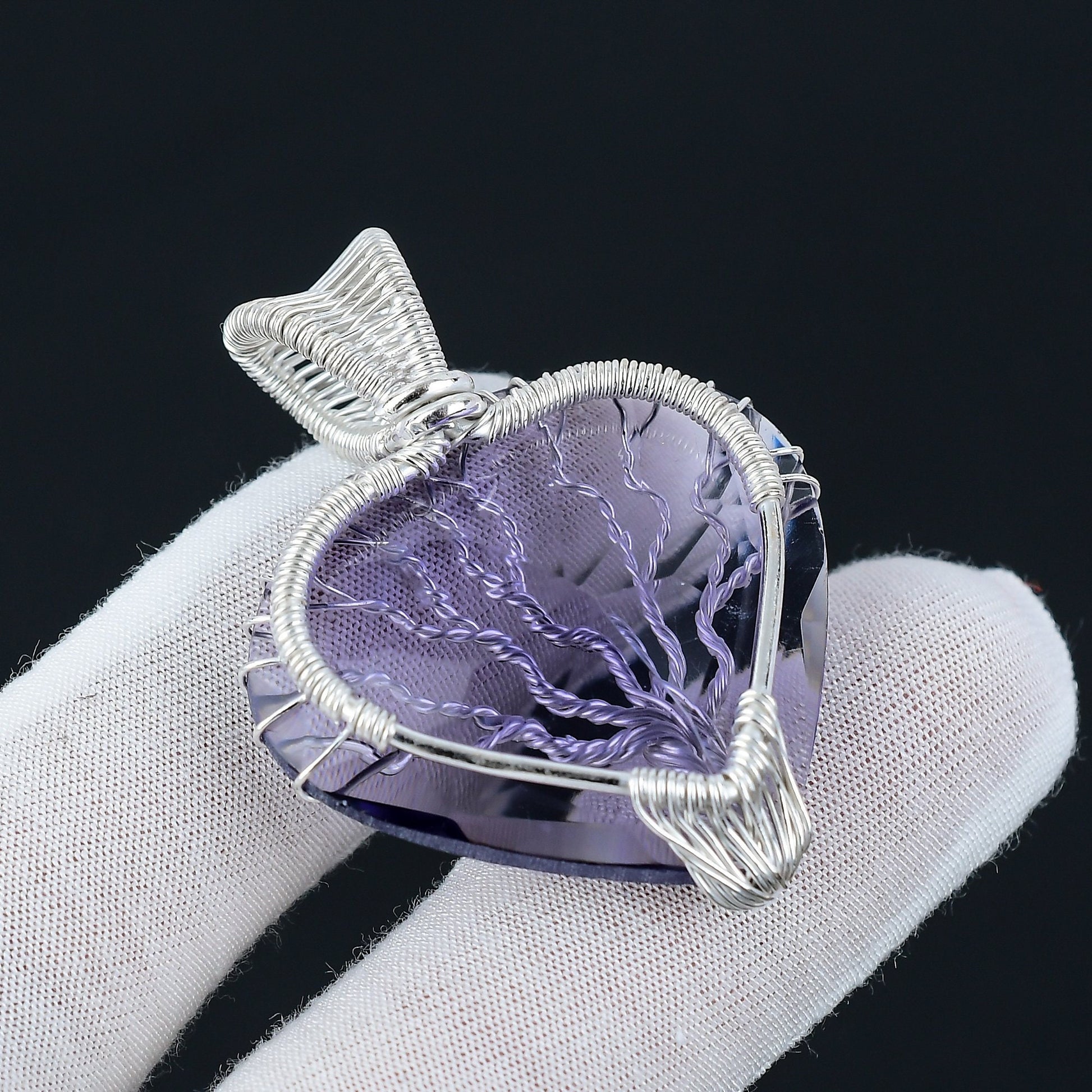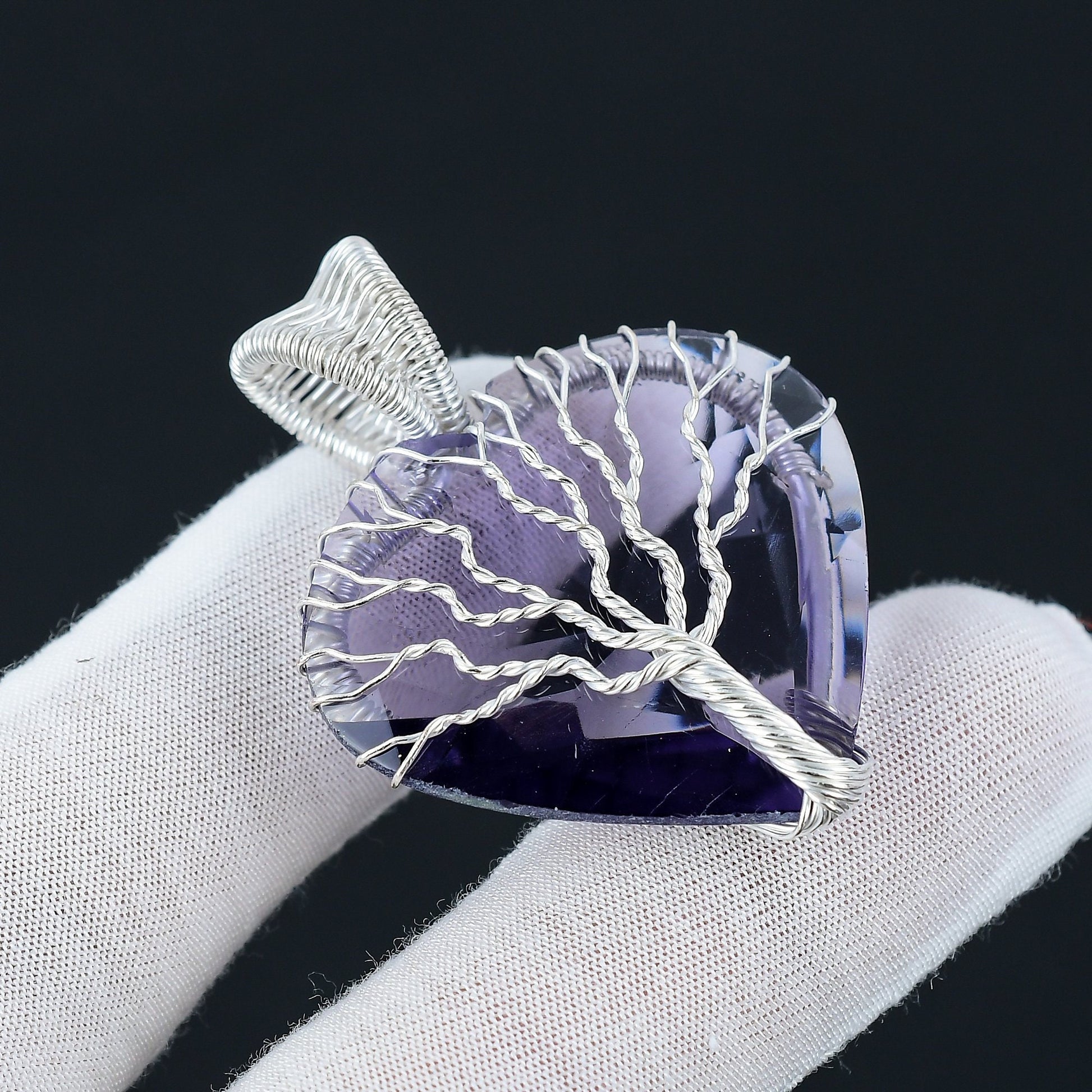 Embrace elegance with this exquisite heart-shaped amethyst pendant, artfully wrapped in a delicate network of silver wire. The deep purple gemstone catches the light beautifully, making it a standout piece for any occasion.
