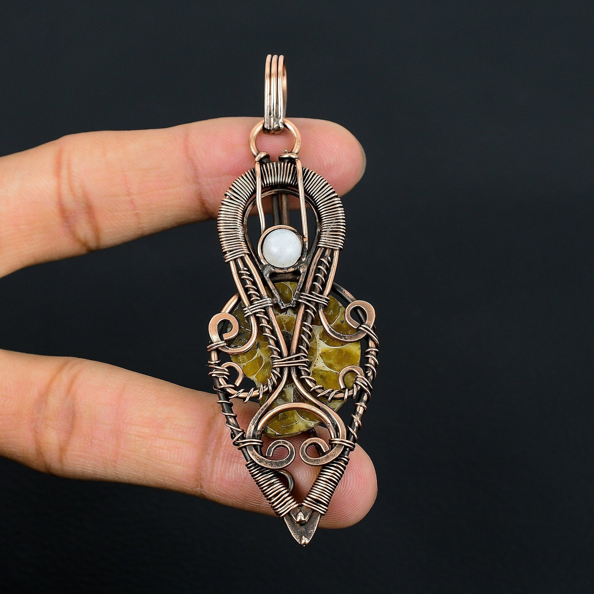 Embrace the elegance of artisan craftsmanship with this stunning wire-wrapped pendant.