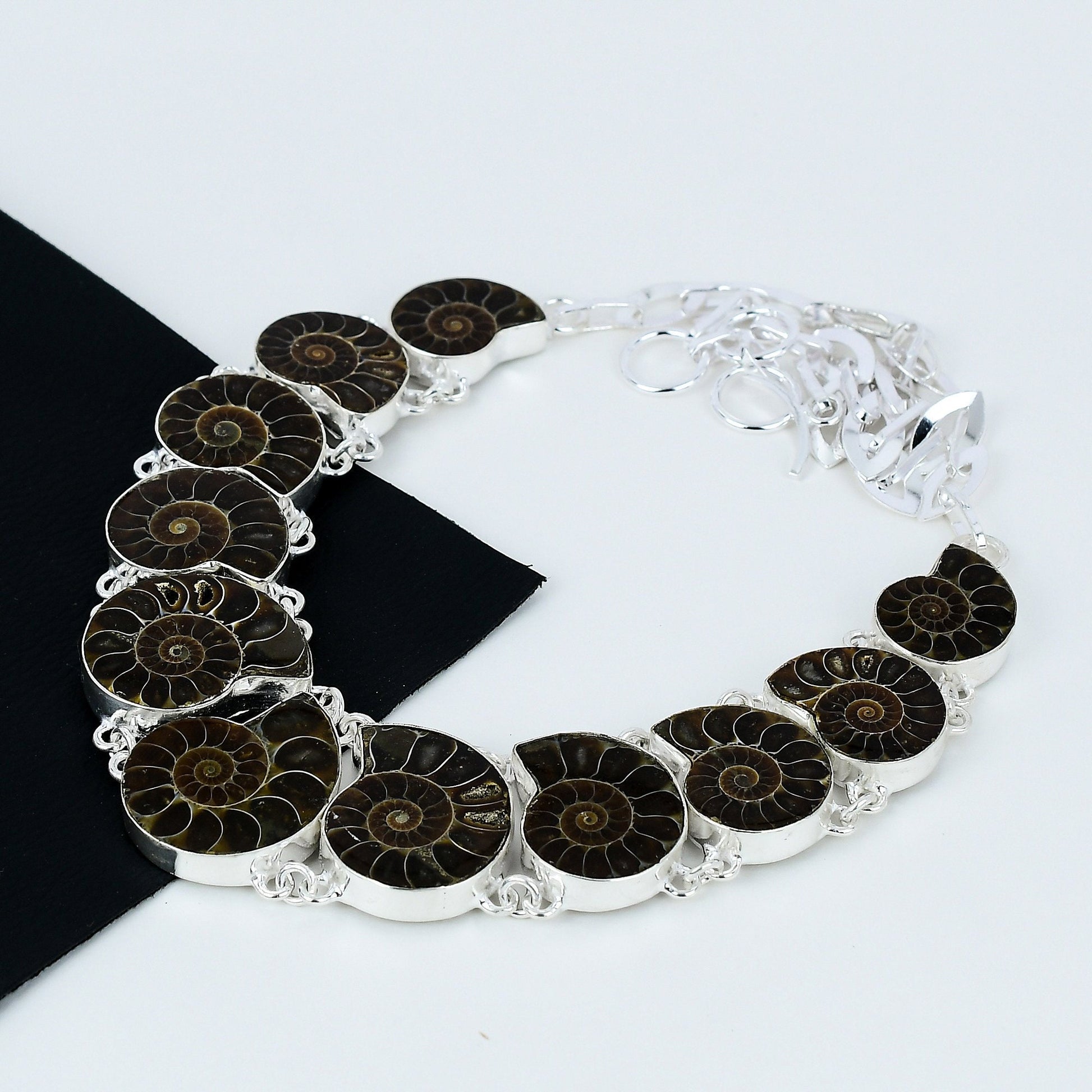 Experience the allure of ancient elegance with our Ammonite Fossil Necklace. Each fossil is uniquely encased in polished sterling silver, creating a stunning interplay between nature and craftsmanship.