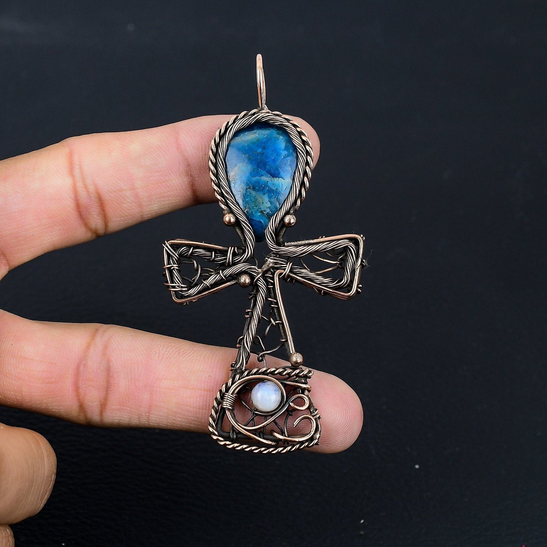 Elevate your style with this exquisite wire-wrapped ankh pendant. Each detail of this piece showcases masterful craftsmanship, blending intricate design with spiritual symbolism to create a truly unique accessory.