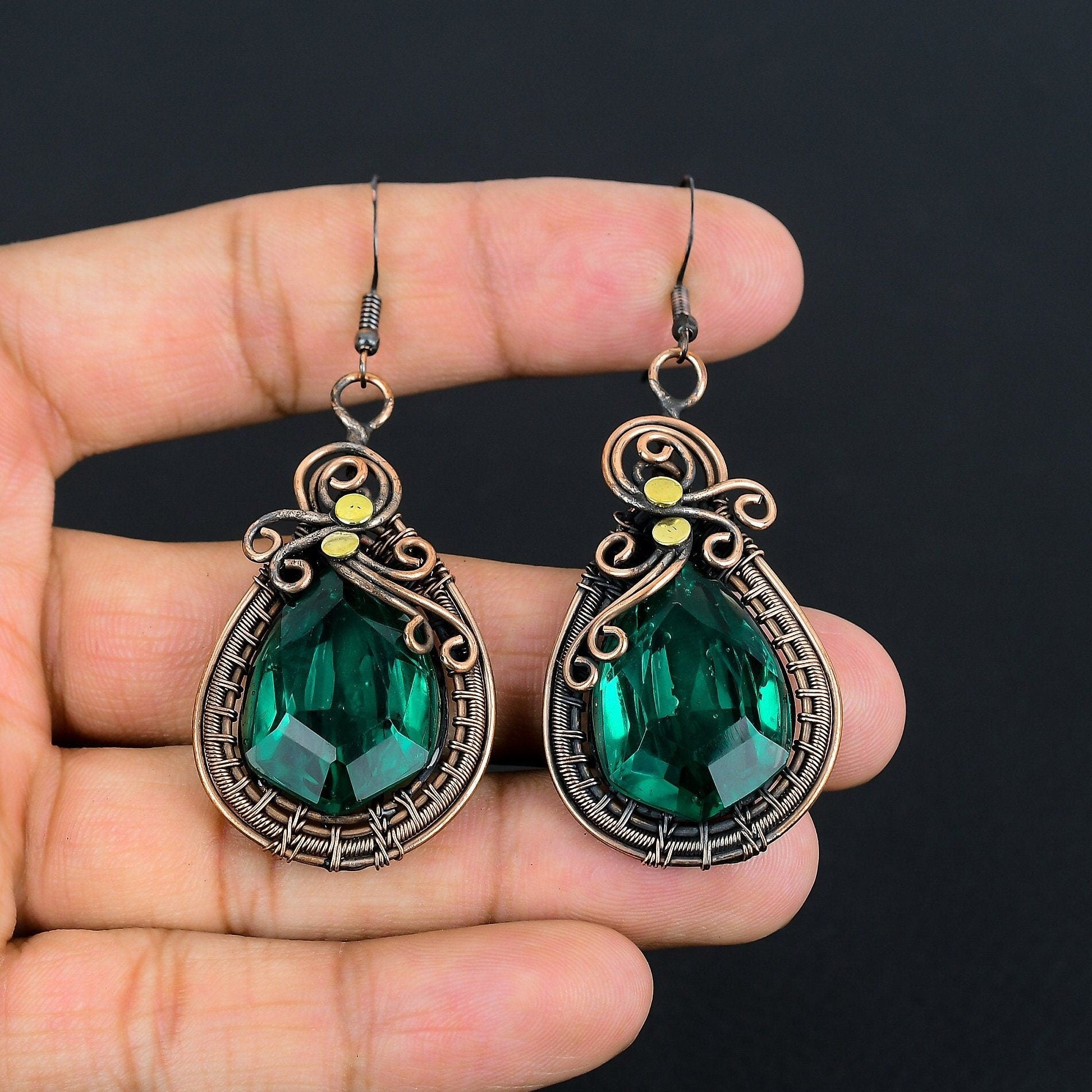 Featuring a captivating emerald green gemstone, each piece is carefully wrapped in intricate wirework, adding a touch of vintage charm.
