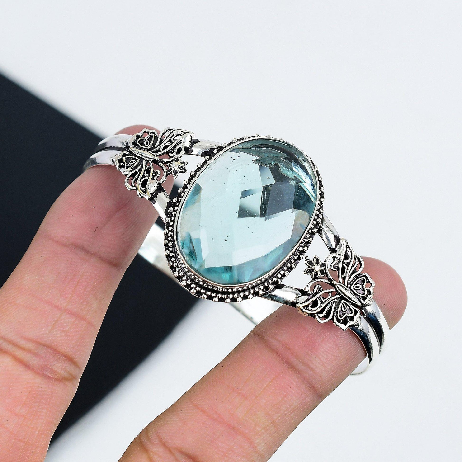 Elevate your style with our exquisite handcrafted bracelet, featuring a stunning aquamarine stone as its centerpiece. This elegant piece is meticulously designed to add a touch of sophistication to any outfit.