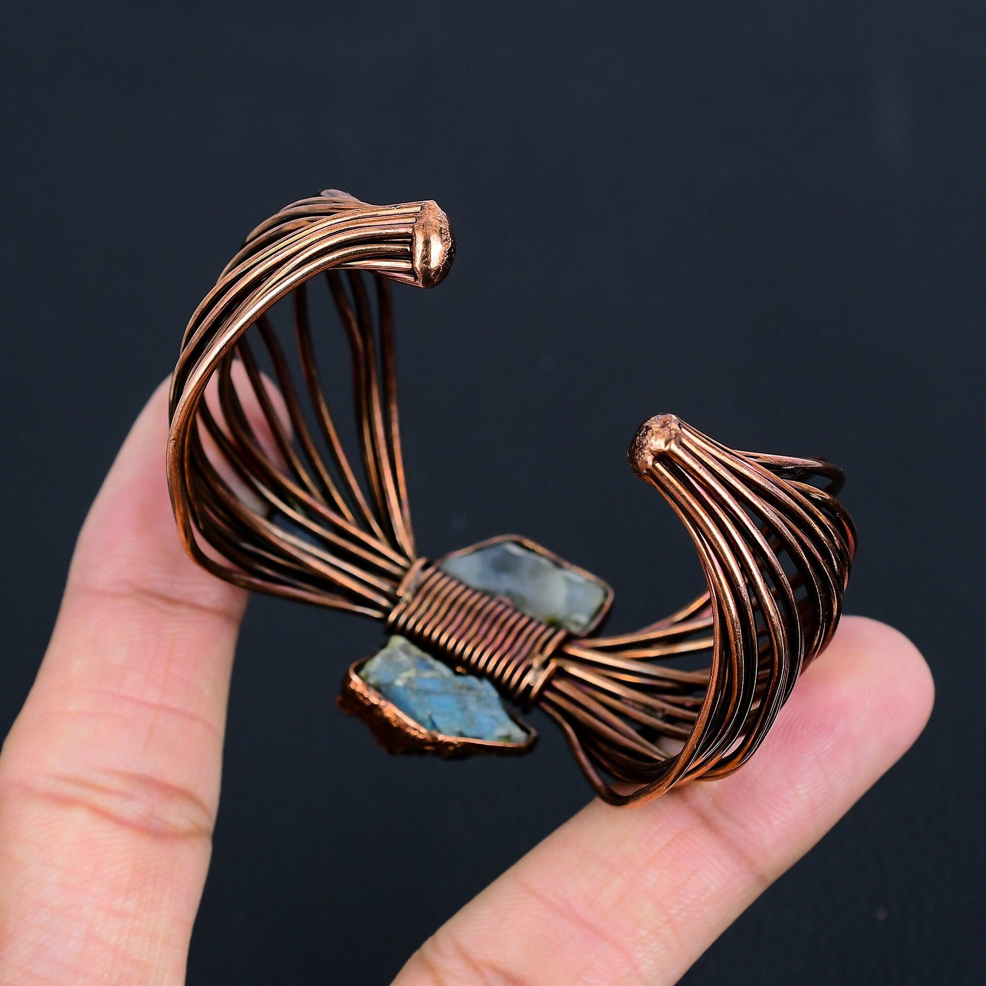 Discover the epitome of elegance with our handcrafted copper wire bracelet, exquisitely designed to make a statement. This stunning piece features intricate wirework, artistically wrapped to cradle semi-precious stones, creating a unique blend of natural beauty and modern design.