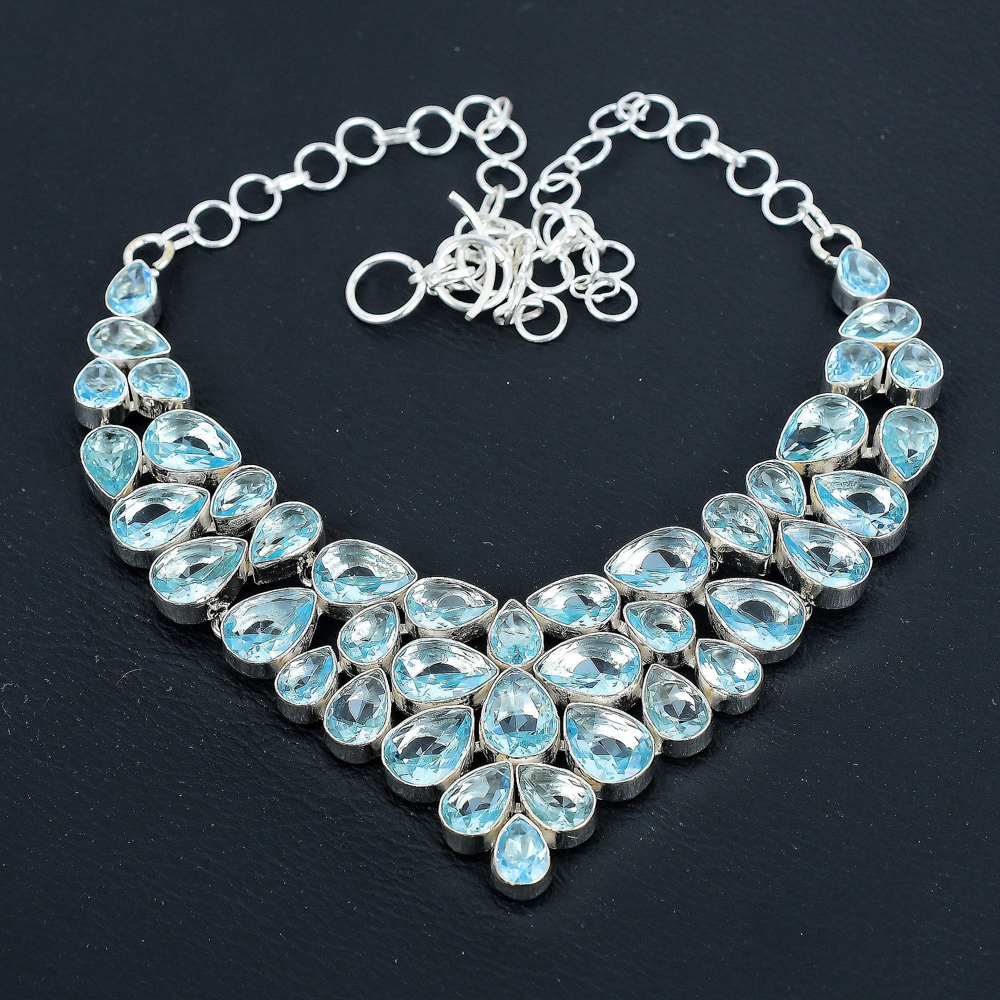 Elevate your elegance with this breathtaking necklace, a stunning statement piece that exudes sophistication and grace. Crafted with meticulous attention to detail, each teardrop-shaped stone sparkles brilliantly, capturing the light and captivating the eye.