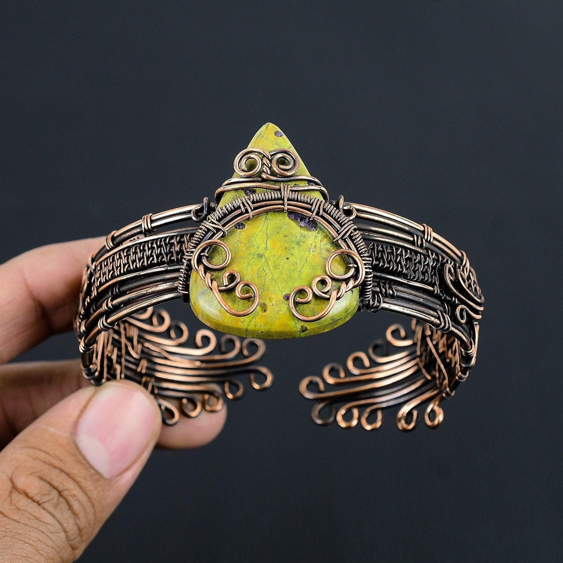 Discover the elegance of our handcrafted wire-wrapped bracelet, featuring a captivating lime green stone as its centerpiece.