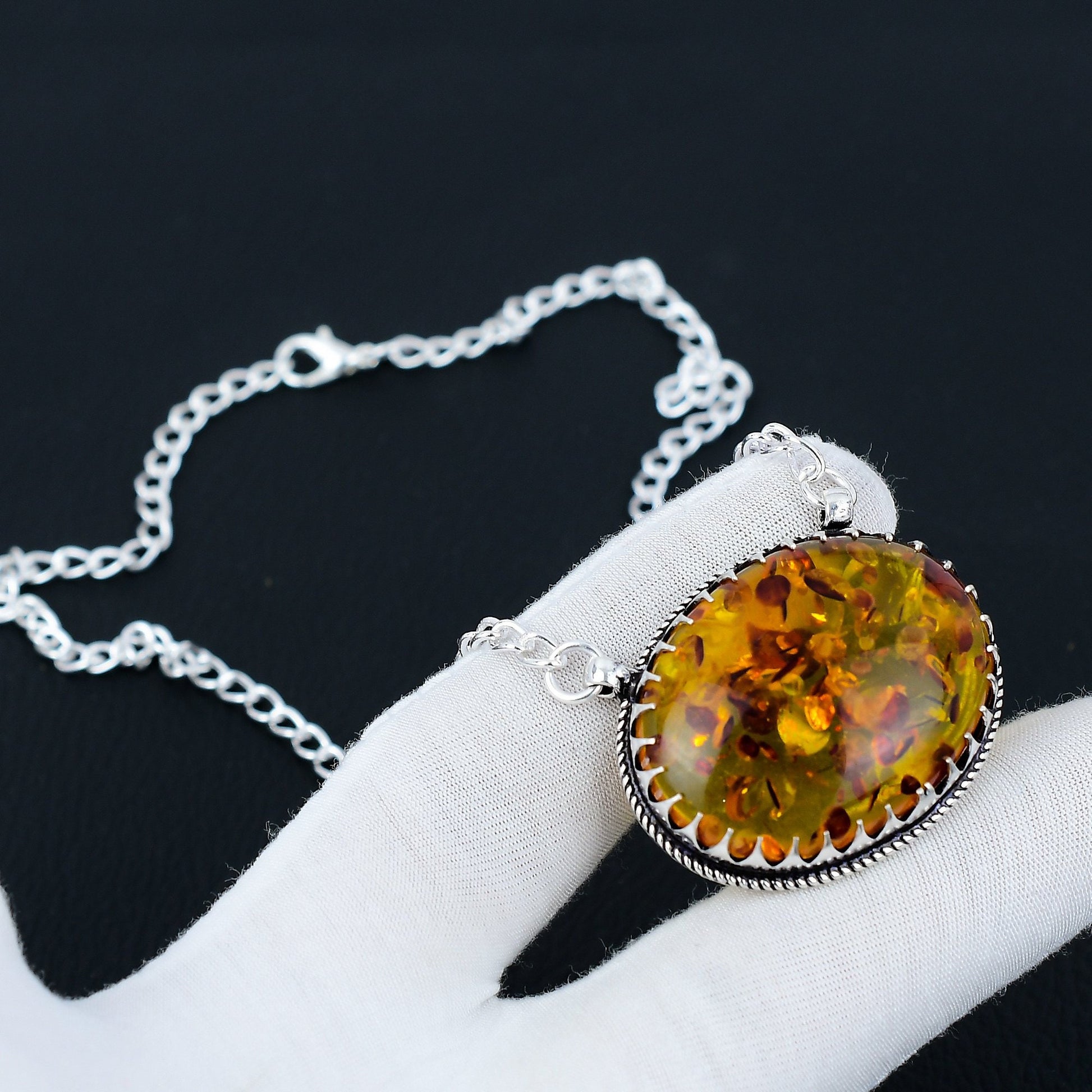 Experience timeless elegance with our exquisite Oval Amber Pendant Necklace.