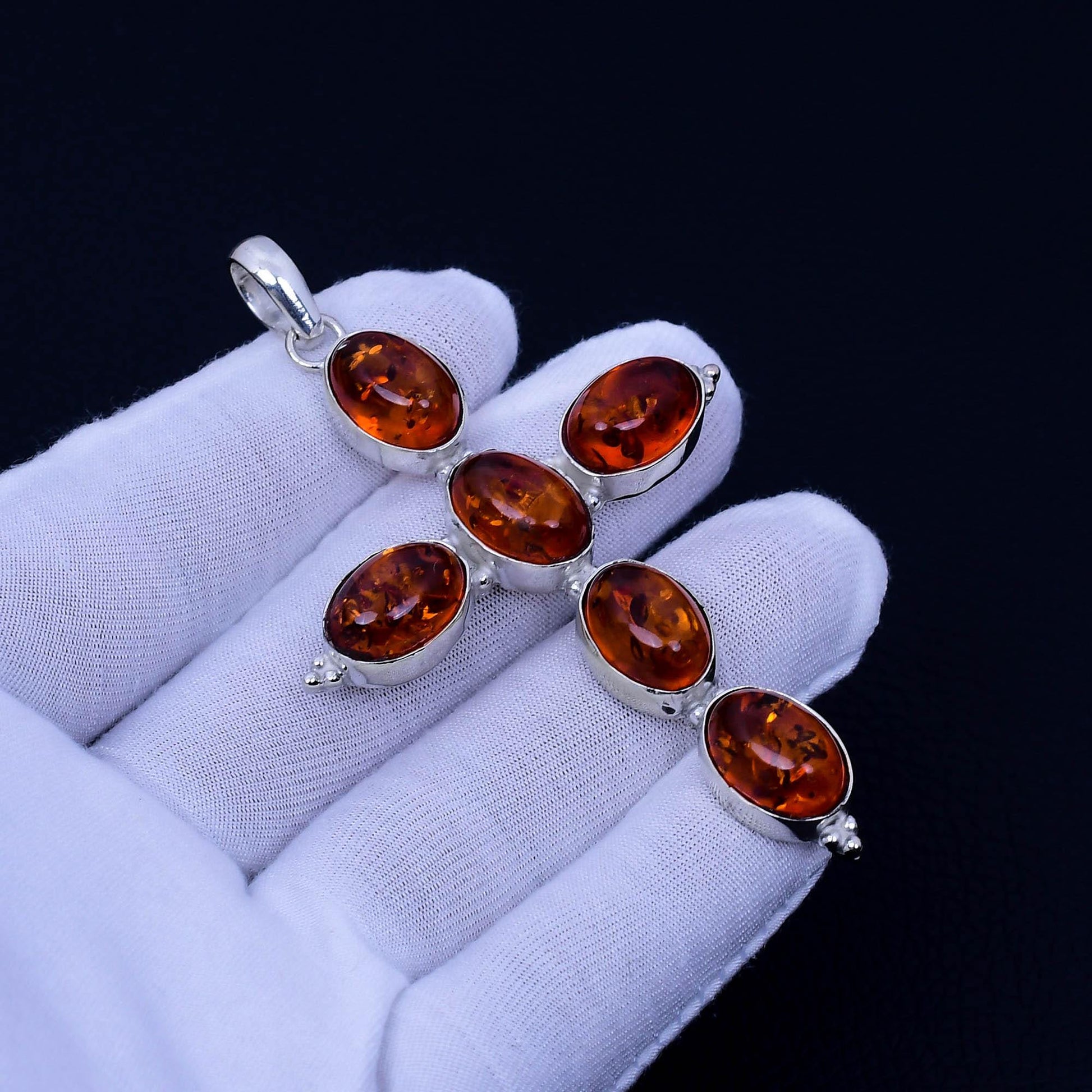 The warm, rich hues of the amber are delicately set in sterling silver, offering a timeless elegance.