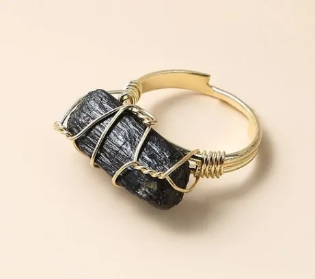 Enhance your style with our exquisite collection of natural stone wire-wrapped rings. Each ring features a unique raw gemstone, carefully chosen for its vibrant color and natural beauty.